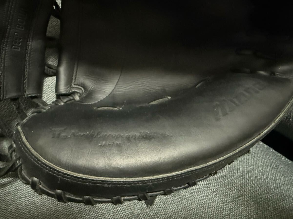 使用によって革の艶が減っているけど摩耗、傷や色褪せが見当たらないです。親指側に日本製のJAPAN刻印もあります。素人採寸ですが長さ約32CMです。