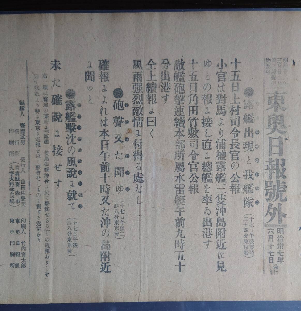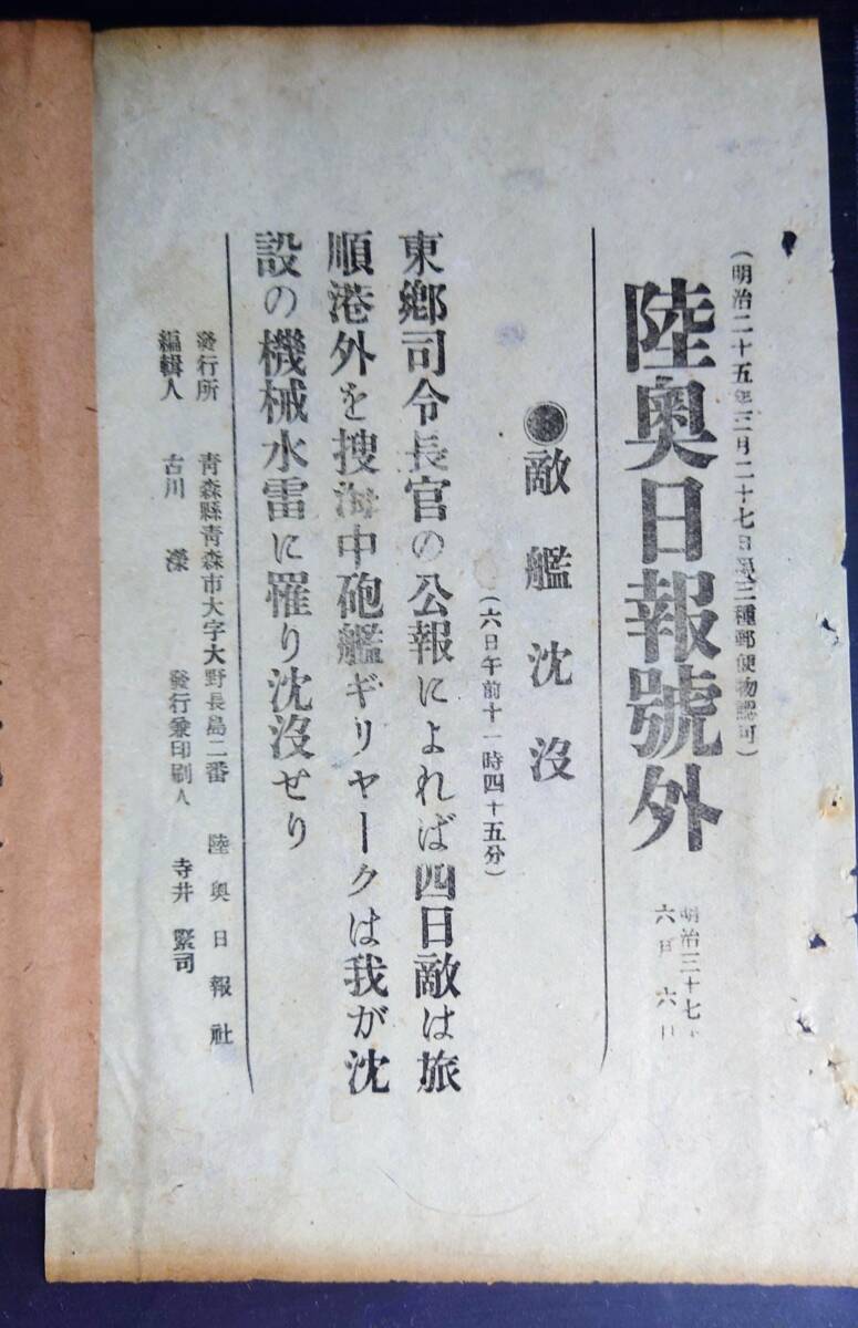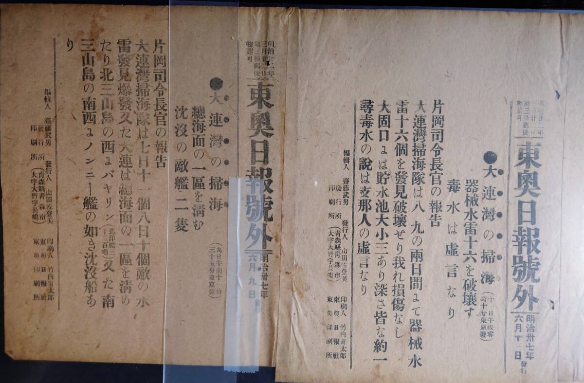 Product name: 120年前(明治37年) 日露戦争(東奥日報)刊号外10枚ファイル③