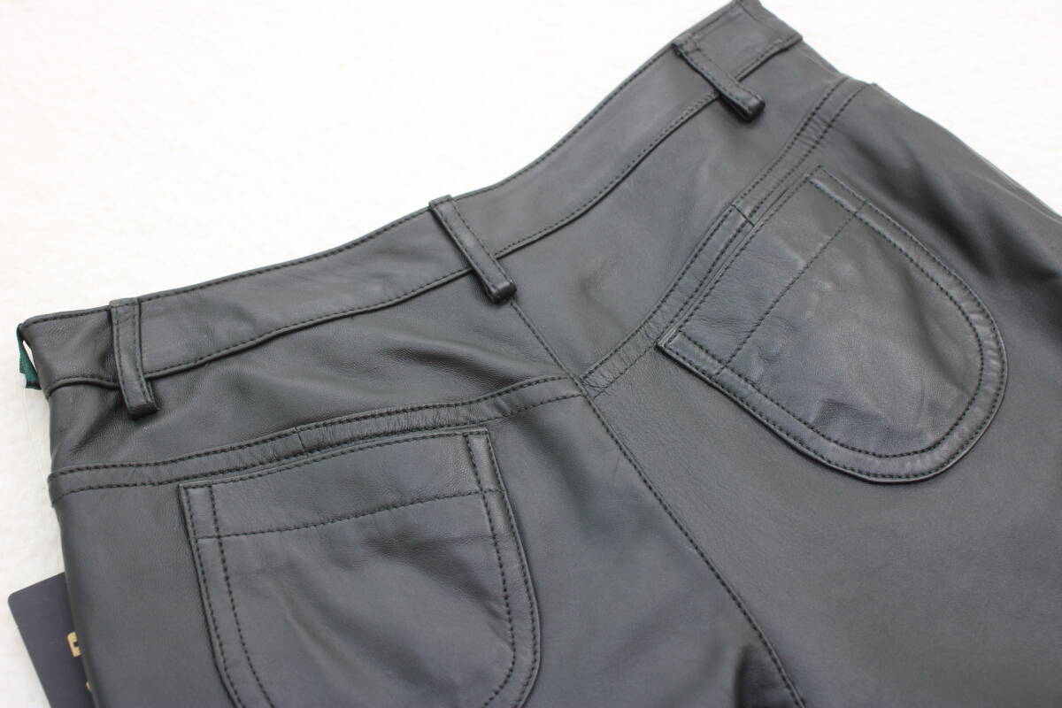 5379 新品タグ付き 高級羊革レザーショートパンツ カーキ7号 定価¥32,000+税