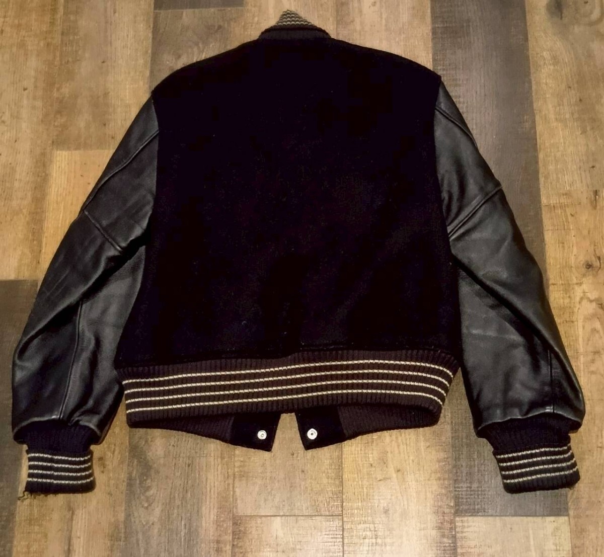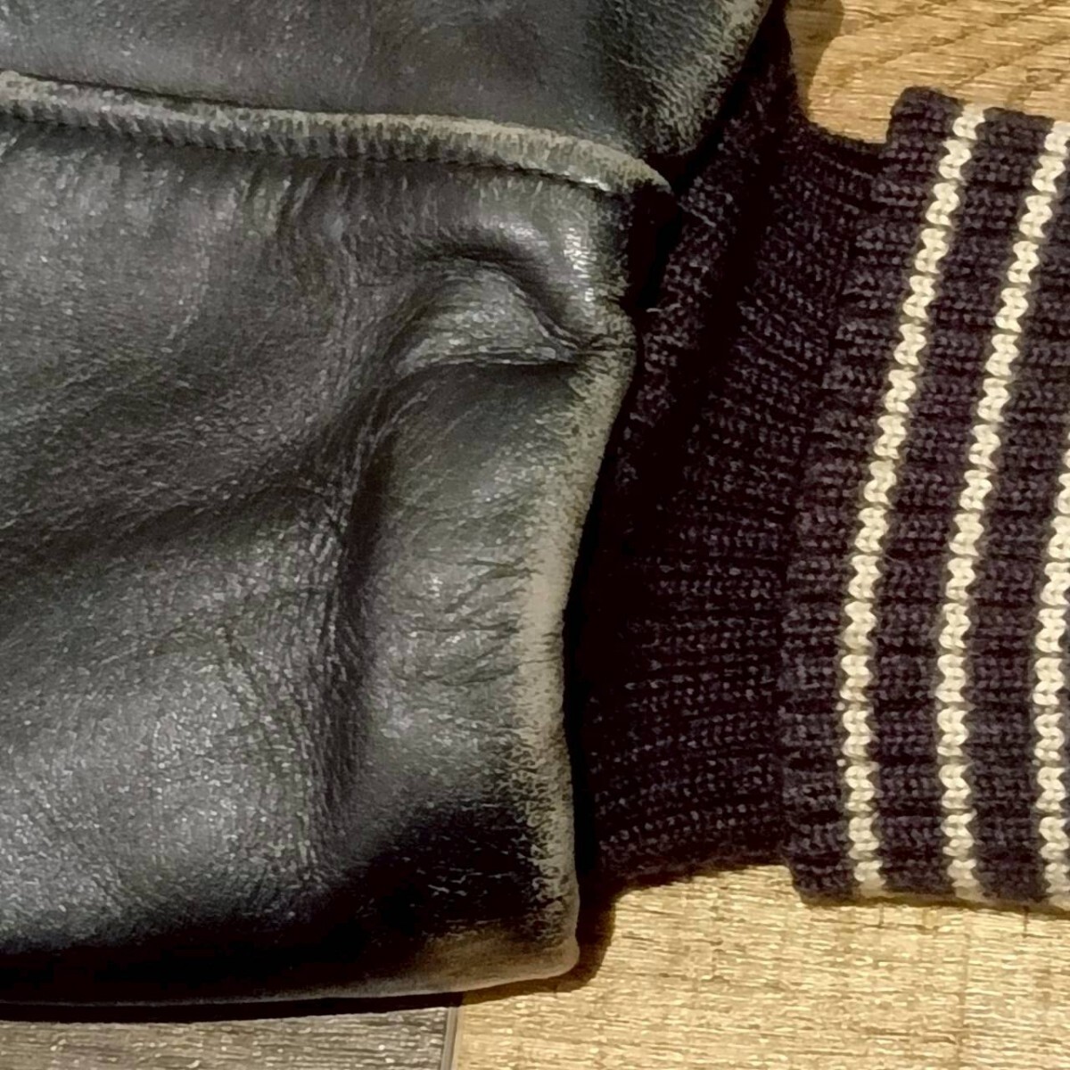 使用感があり、レザー部分のスレや袖に若干破れががございます。ですが、古着慣れしている方なら問題なくまだまだ着用出来ると思います。裏地に光沢があり高級感があります。それなりに使用感はありますが、これ位の方がアメカジスタイルには味があり私は好んで着用しておりました。