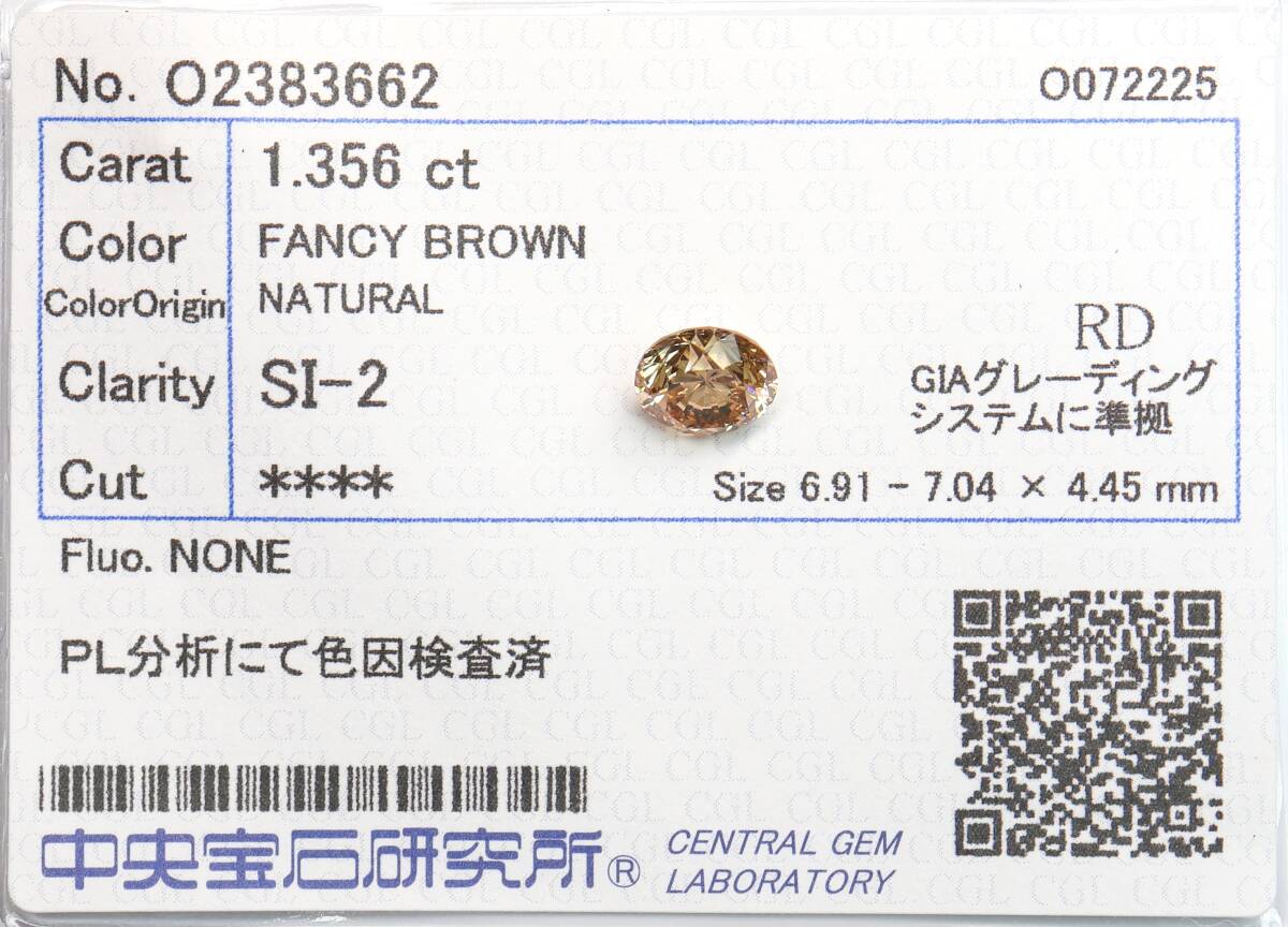 Product name: 【100円~】1.356ct!天然ダイヤ FANCY BROWN(ナチュラルカラー)SI2 RD