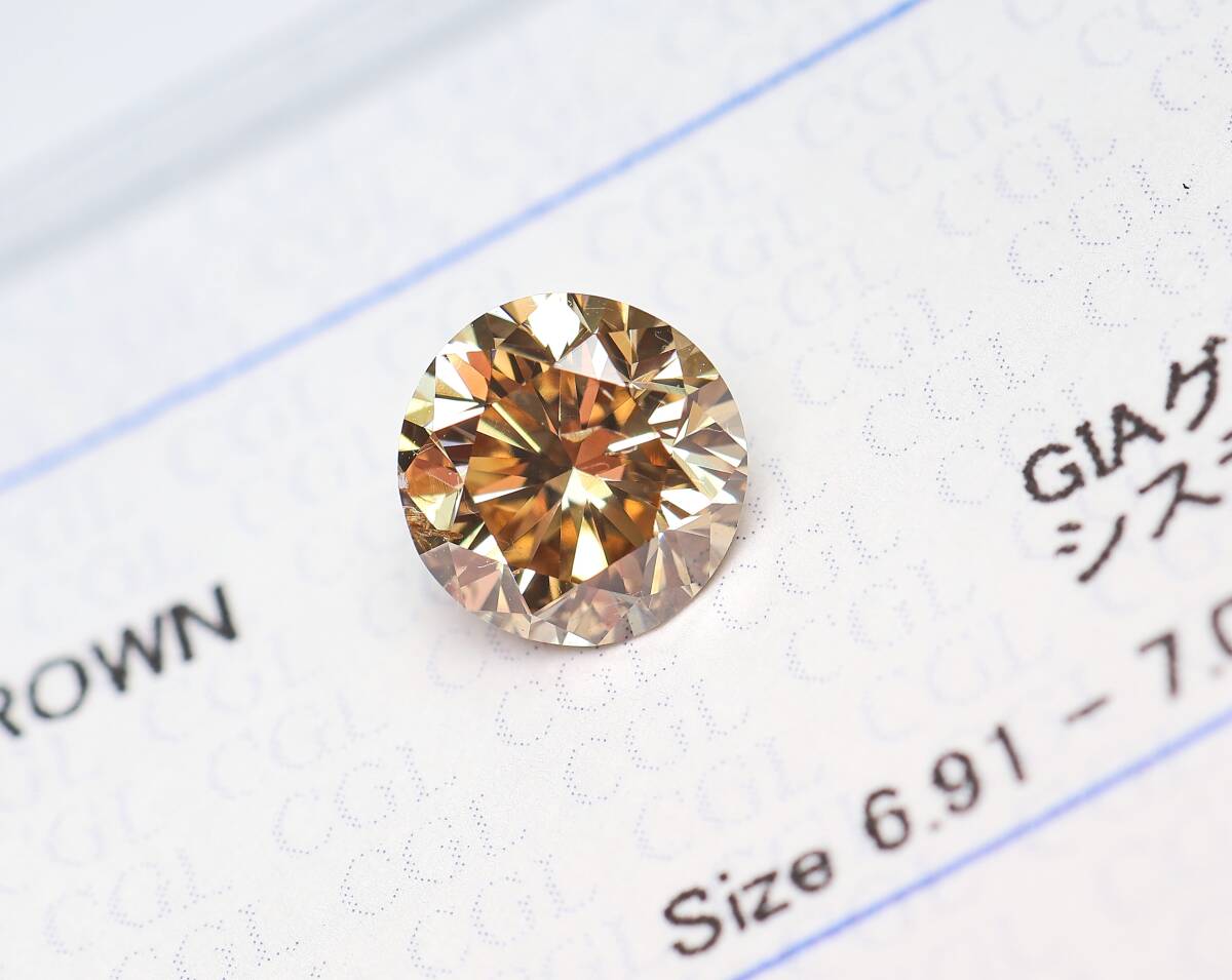 【100円~】1.356ct!天然ダイヤ FANCY BROWN(ナチュラルカラー)SI2 RD