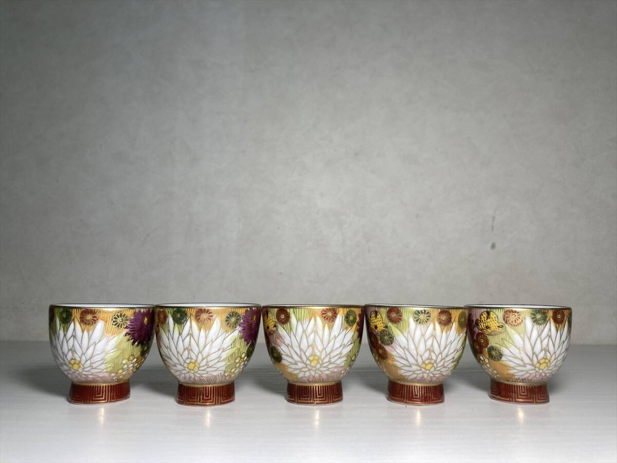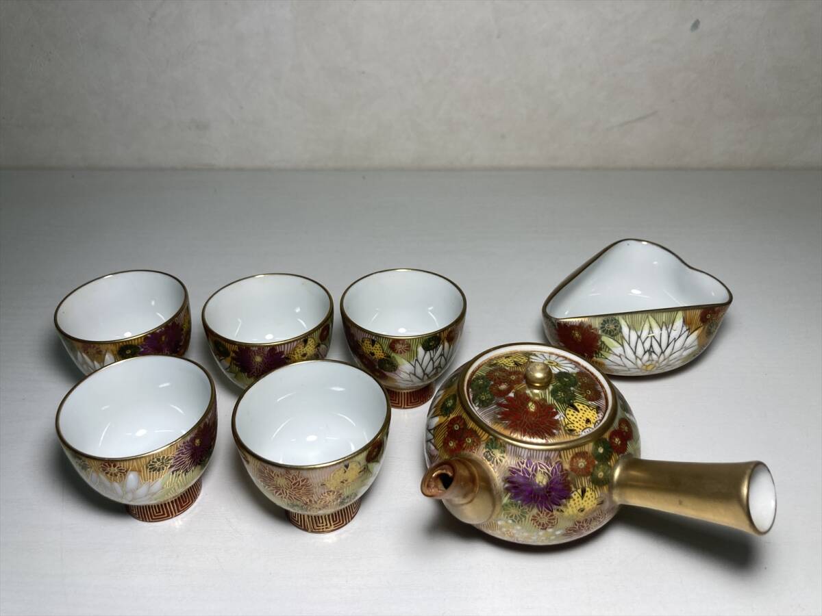 Product name: 京都8☆ 九谷焼 章山 金彩 花柄茶器揃 急須 湯冷まし 煎茶碗 5客 煎茶道具 古物 骨董品