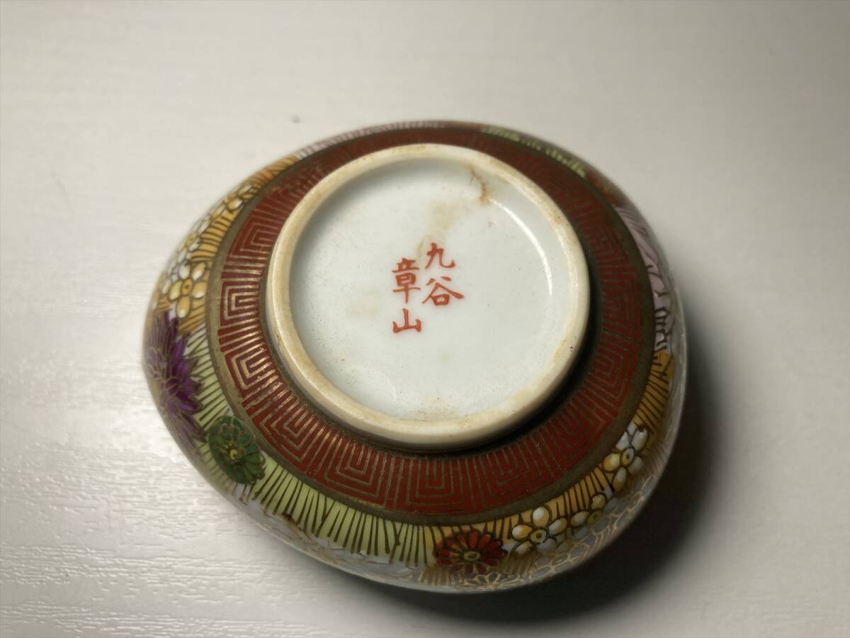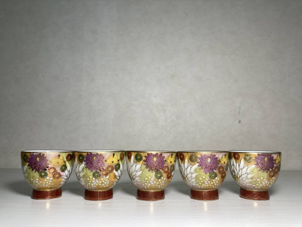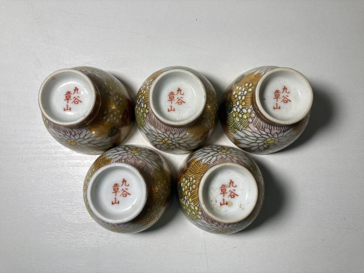 京都8☆ 九谷焼 章山 金彩 花柄茶器揃 急須 湯冷まし 煎茶碗 5客 煎茶道具 古物 骨董品