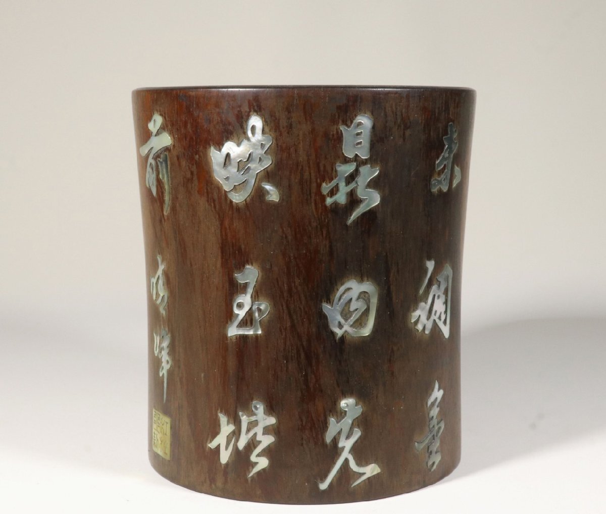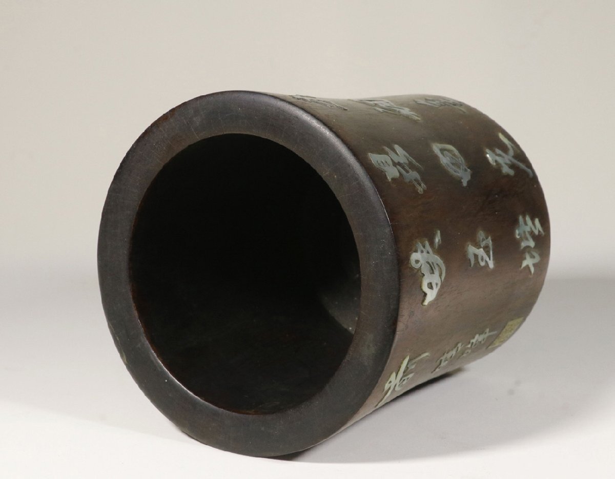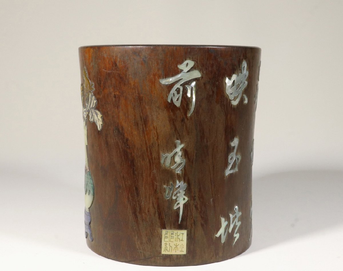 Product name: 【安】清時代 海南黄花梨 嵌め螺鈿 博古漢詩紋筆筒 細密毛彫 書道具 文房具 中国古美術 時代物 古董品 318