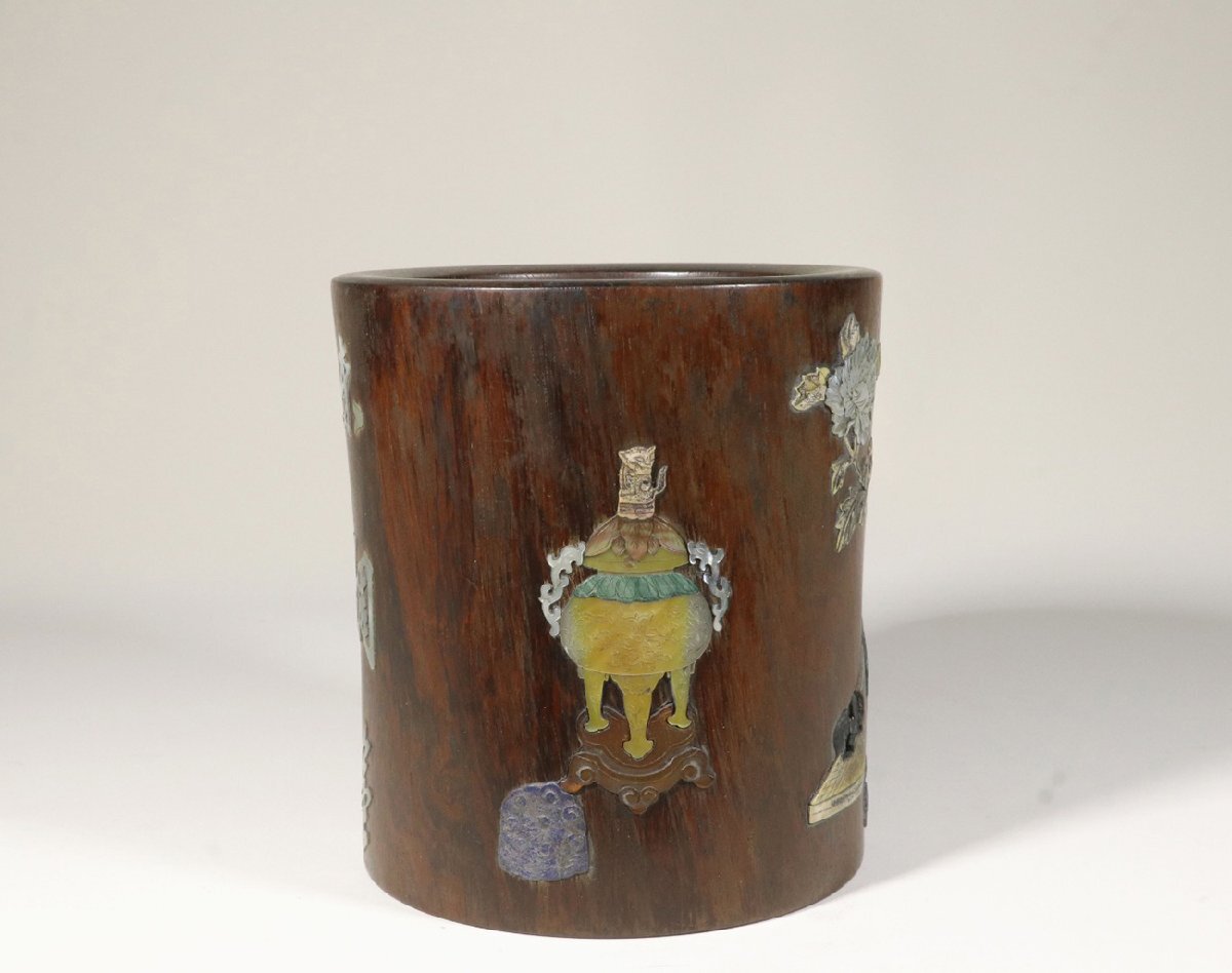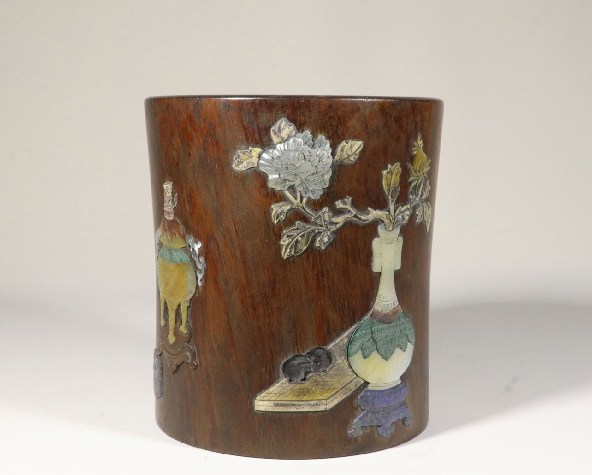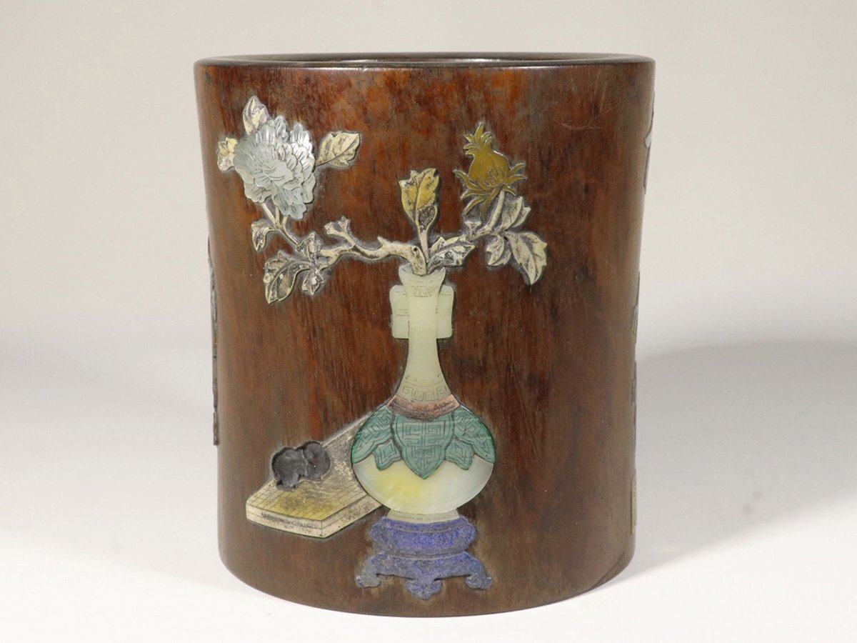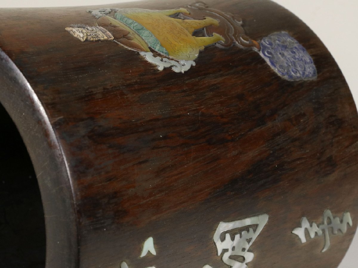 Product name: 【安】清時代 海南黄花梨 嵌め螺鈿 博古漢詩紋筆筒 細密毛彫 書道具 文房具 中国古美術 時代物 古董品 318
