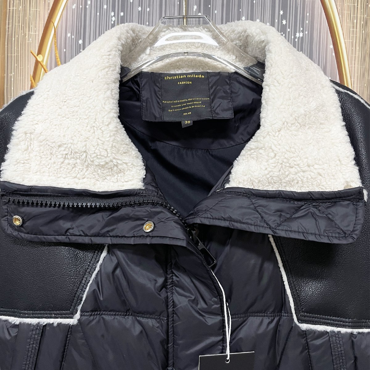 Product name: 定価10万★christian milada・ミラノ発・ダウンジャケット★軽量 防寒 防風 ふわふわ 定番 切替 ショット丈 ゆったり コート レディース M