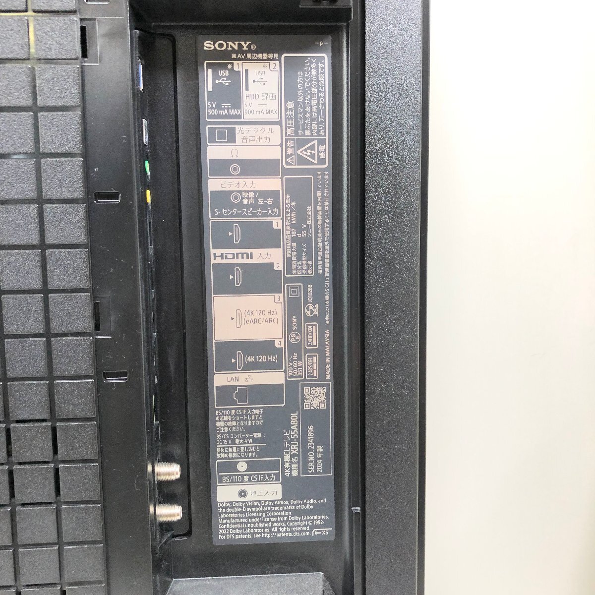 Product name: 【直接引取or家財便】【中古品】SONY BRAVIA 55インチ 4K有機ELテレビ XRJ-55A80L 2024年製 ソニー ブラビア リモコン付 ST10-121
