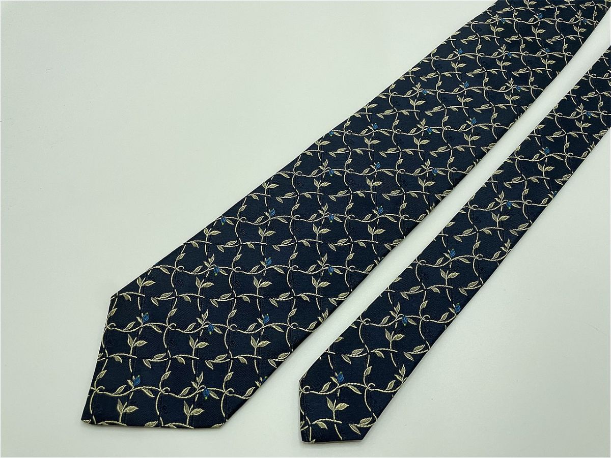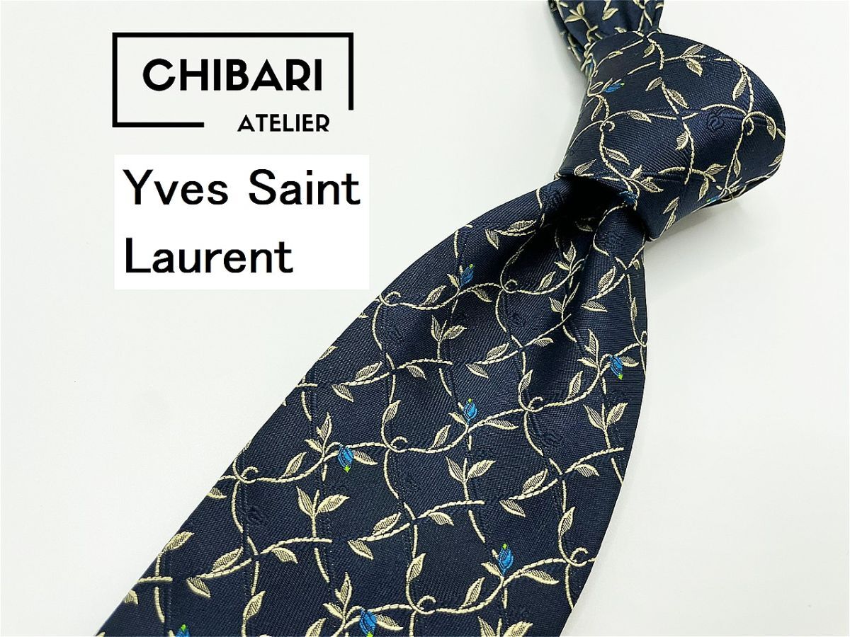 【超美品】YvesSaintLaurent サンローラン 花柄 ネクタイ 3本以上 送料無料 メンズ ブラックネイビー 0904113