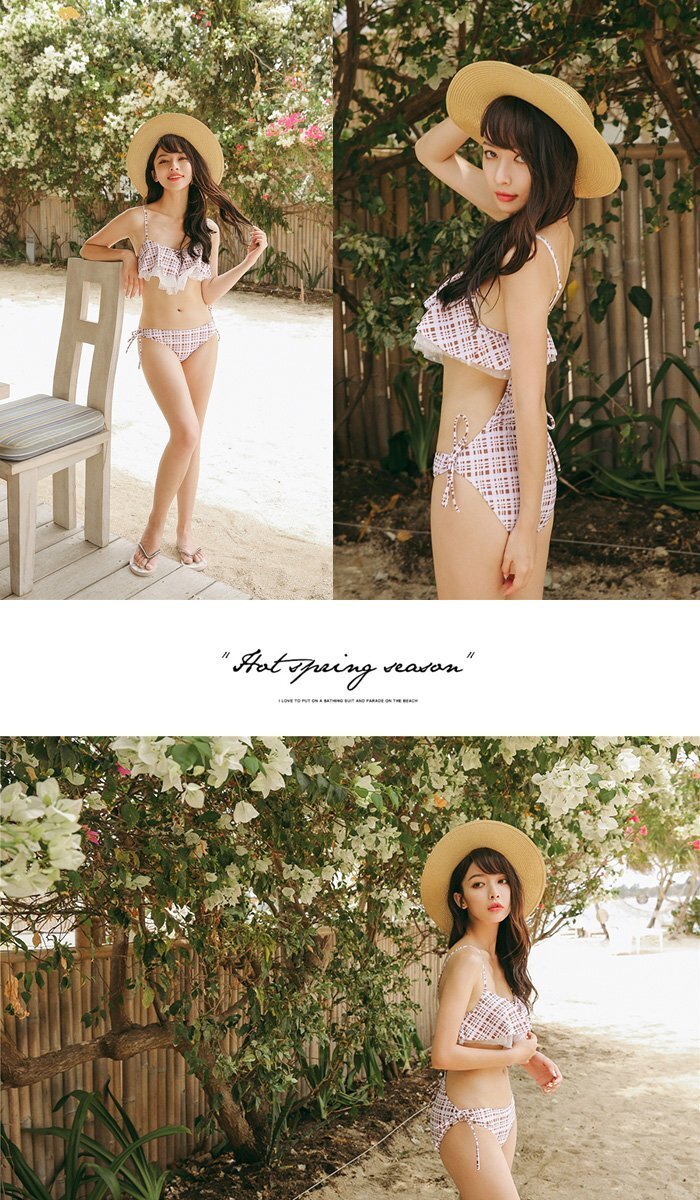 Product name: 水着 レディース ビキニ フリル フレアトップ シンプル かわいい 水着 オトナ女子 体型カバー ブラウンチェック XLサイズ(13号)