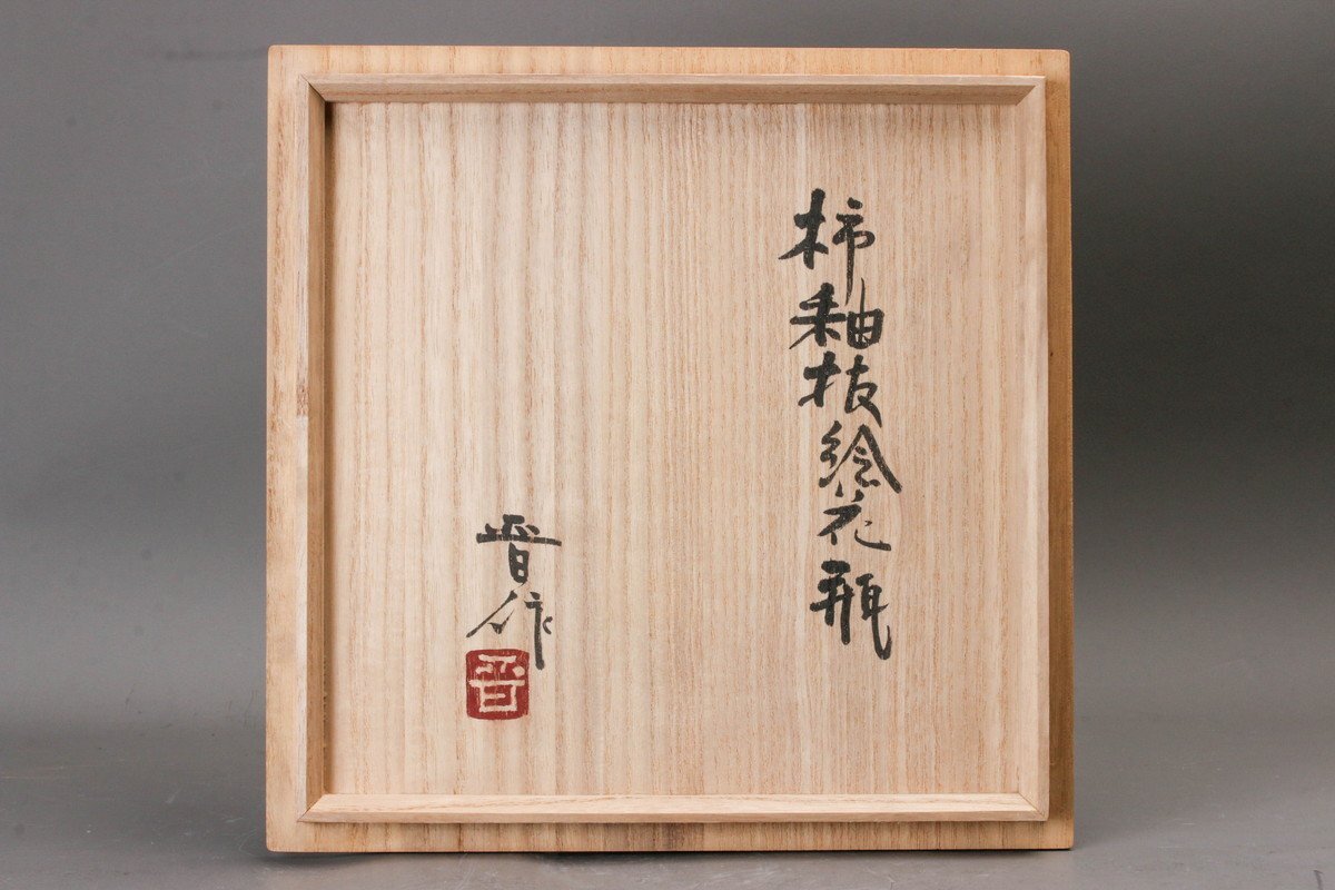 Product name: 【SAG】浜田晋作 高さ27cm 柿釉抜絵花瓶 共箱 栞 本物保証