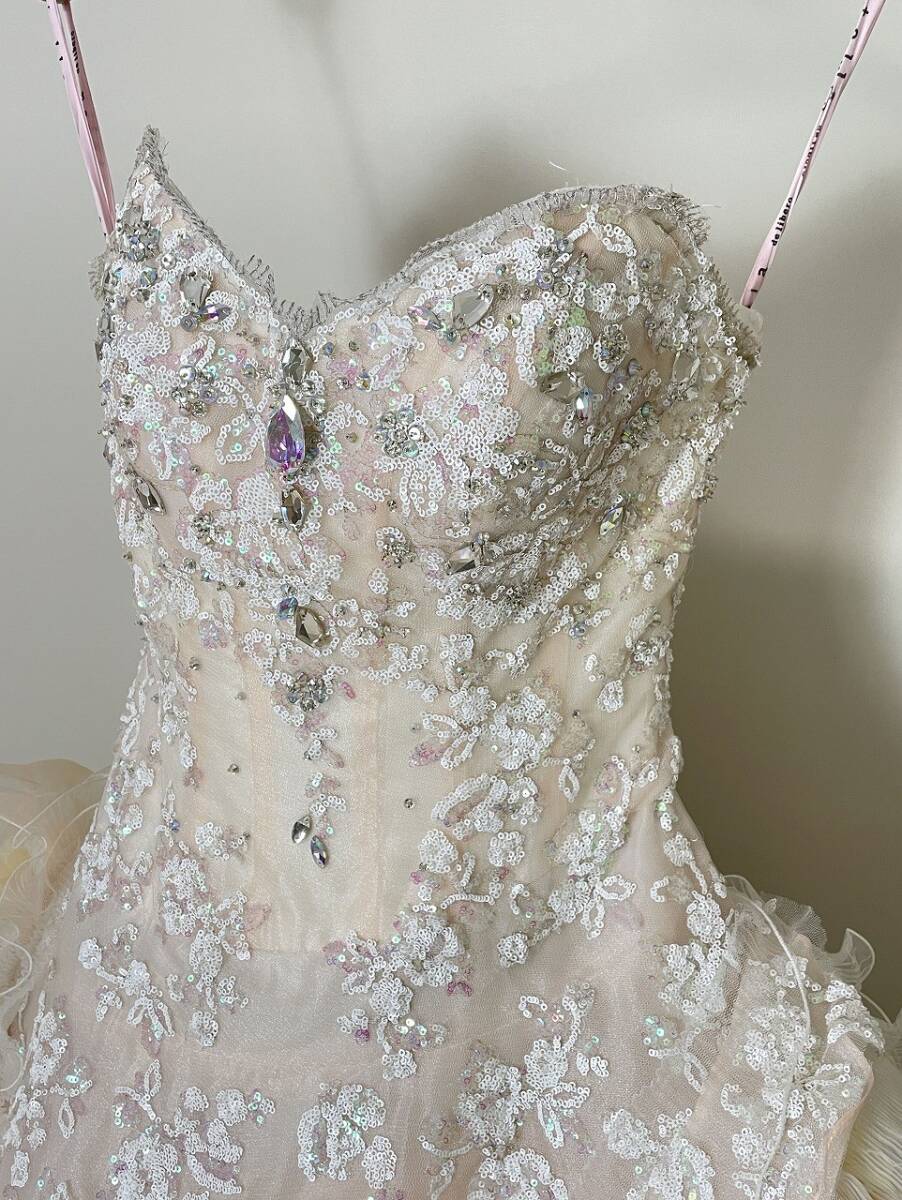 ※目立つダメージや変色・汚れについてはできるだけ記載しておりますがドレス内側や細かなダメージ等までは検品しておりません。中古品になりますので使用感・細かな傷、汚れがある場合がございます事あらかじめご了承の上ご入札ください。