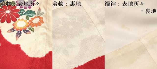 状態は接写画像のように着物・襦袢:表地所々・裏地に薄い汚れがございます。