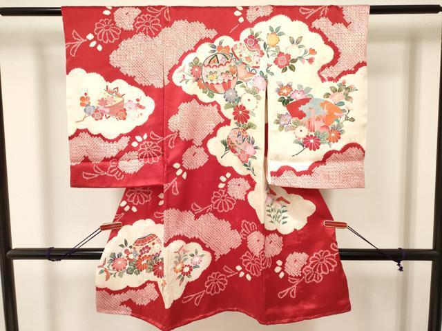 Product name: 平和屋着物[]お宮参り 女の子 祝着 産着 初着 のしめ 絞り 折り鶴 糸車 鞠花文 金銀糸 逸品 DAAW2957ma