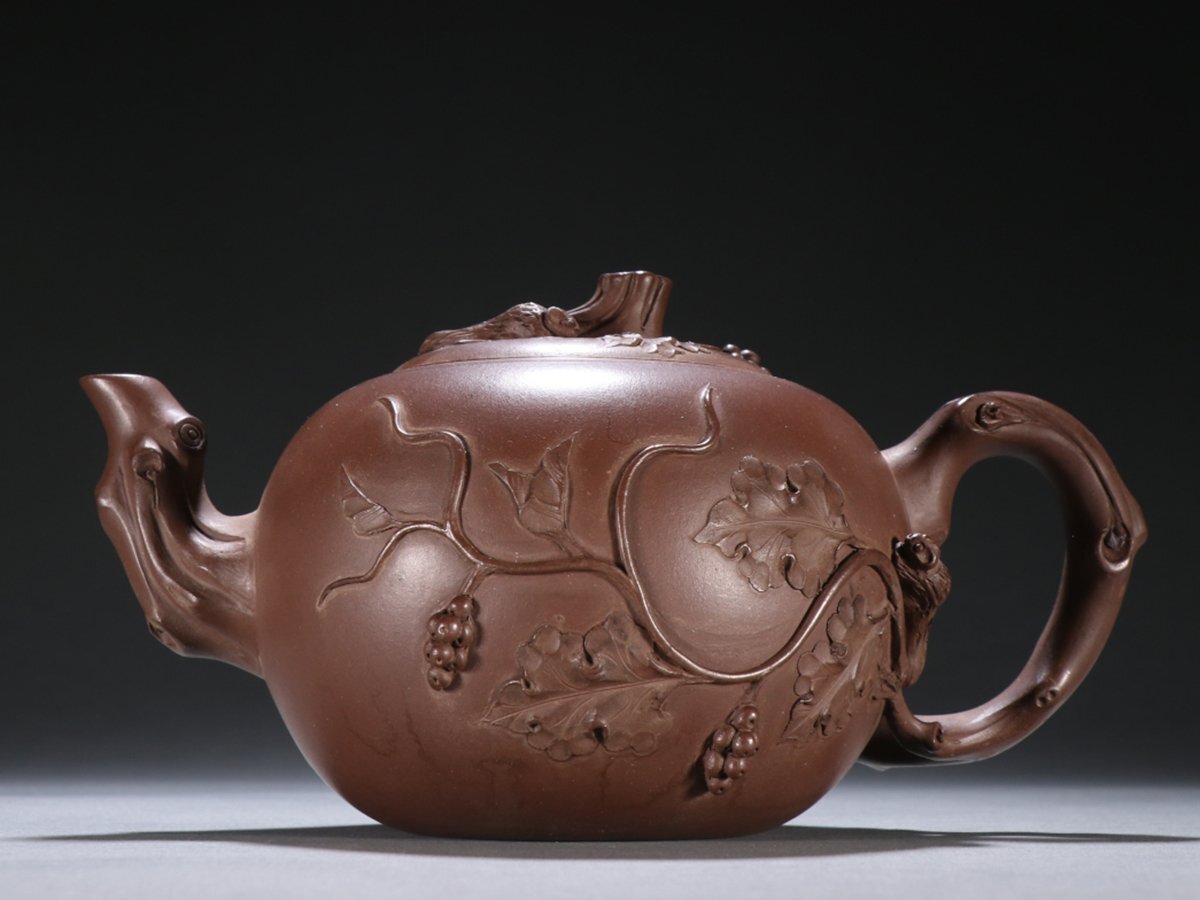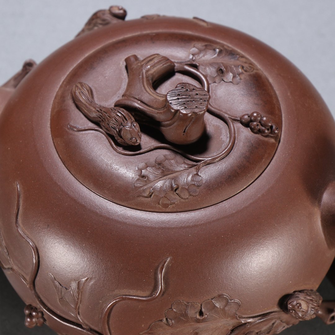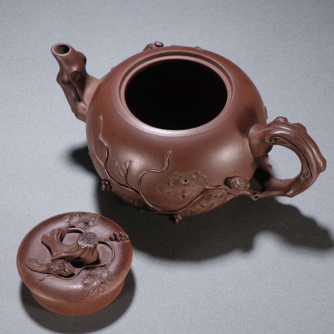 Product name: 【安】急須 朱可心銘 堆彫 松鼠葡紋茶壺 宜興紫砂 常滑 朱泥急須 煎茶道具 茶壷 古董品 時代物 311