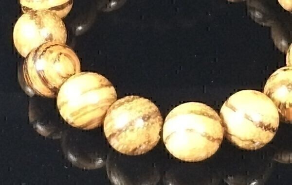 沈香はもともとたいへん希少で、近年ワシントン条約で収穫が禁じられたためほとんど流通がありまん。もしあっても20万円前後と高価です。この品物はベトナムで人工的に栽培されるもので、独特な栽培技術によって香りの高い逸品に仕上がっています。はずした後も微かに香るくらいの香りです。天然では虫食いや風雨による偶然的な防腐作用を待つのですが、ここ数年は人工的に樹脂化させる栽培沈香が主流で、こちらもそういう沈香です。それなりに高価ではあります。沈香の香りには鎮静効果があります。心を落ち着けたい時にピッタリです。いわゆるお数珠ではありません。男女兼用のブレスレットとしてお役立てください。