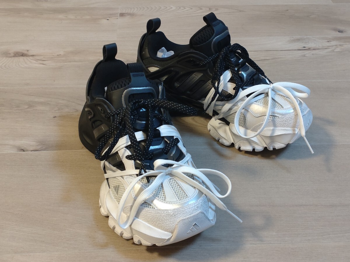 アディダス XLG Runner Deluxe は、Balenciaga を彷彿とさせるデザインで、その名が示す通り「エクストラ・ラージ」なボリューム感と、80〜90年代のランニングシューズにインスパイアされたシルエットが特徴的な存在感抜群のスニーカーです。