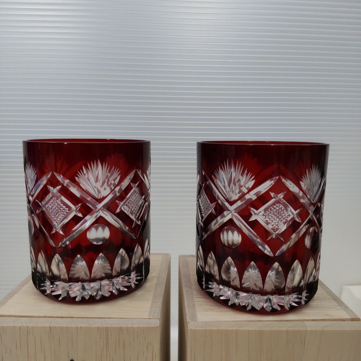 s674 江戸切子 グラス 赤 青 藤色 計5個 伝統工芸 ロックグラス