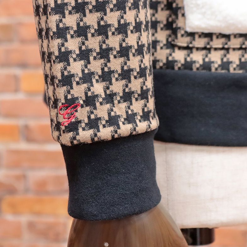 ジャガードジャージー素材とボアを組み合わせて作られたトラックトップ。レトロな雰囲気の千鳥格子柄がお洒落な一枚。ゴルフシーンに大活躍のアイテムです。