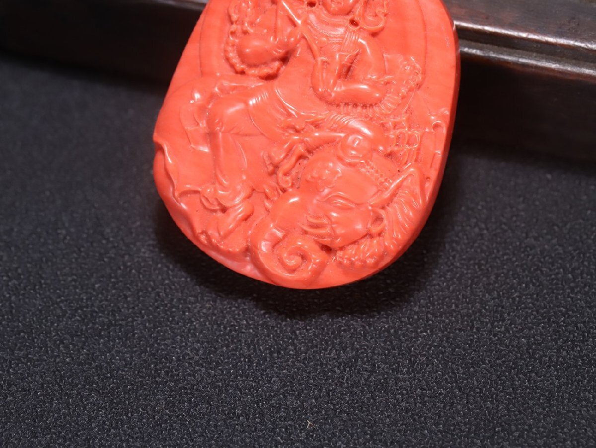 Product name: 【安】清時代 珊瑚 サンゴ 文殊菩薩掛件 極細工 古置物 古擺件 中国古美術 時代物 古董品 311