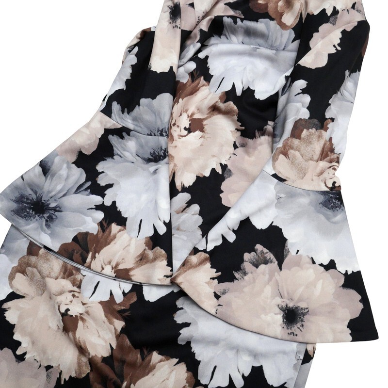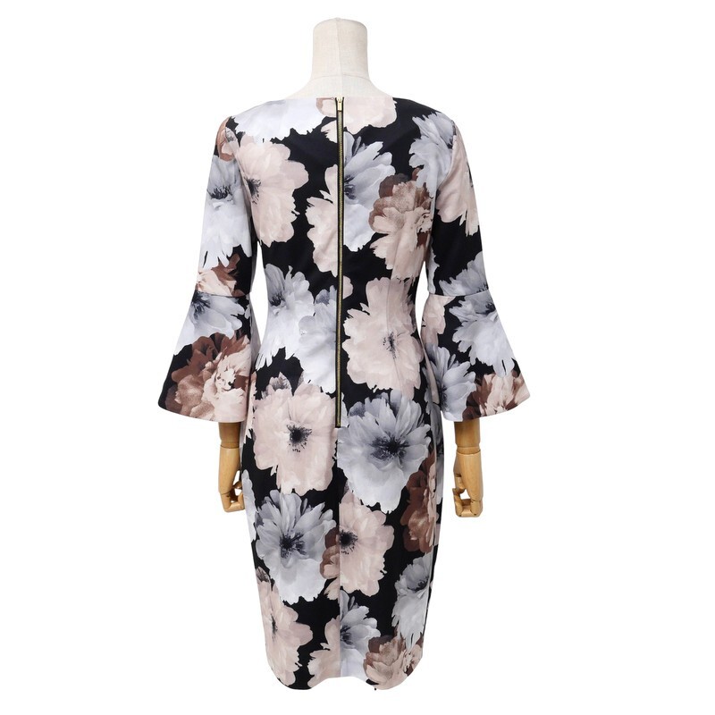 GS3858*Calvin Klein カルバンクライン 花柄 フラワープリント フレアスリーブ ワンピース ドレス Size 2 ブラック系