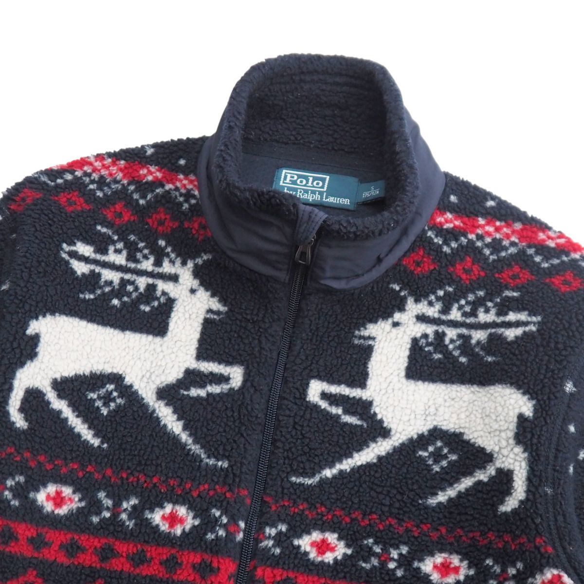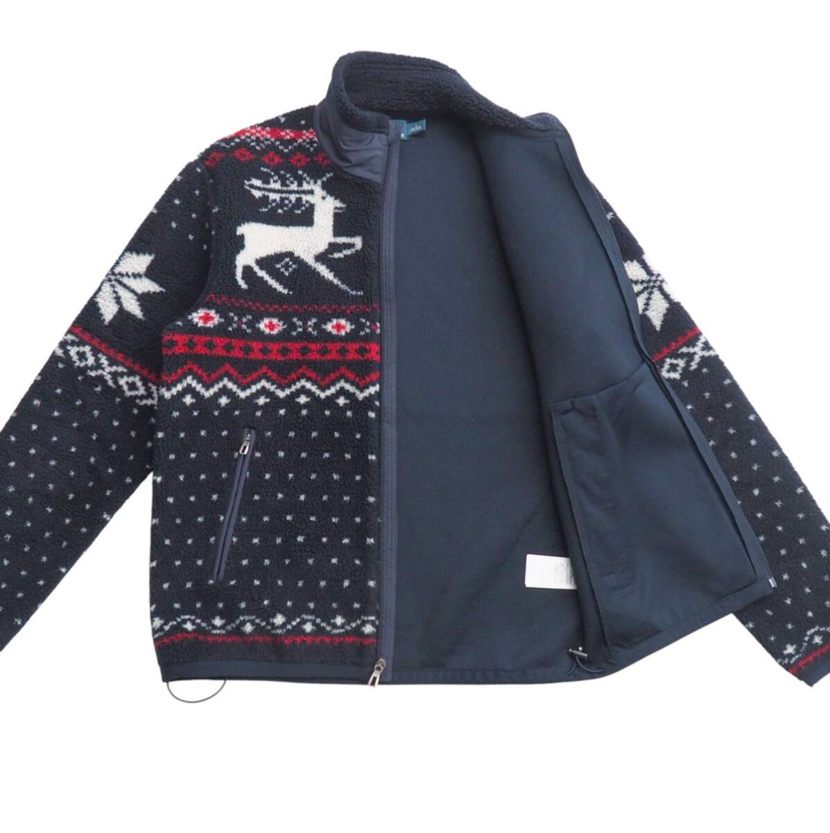 Product name: TJ3979◎ポロラルフローレン トナカイ スノーフレーク柄 ボアフリース フロントジップ ジャケット ブルゾン ネイビー系 メンズ サイズS