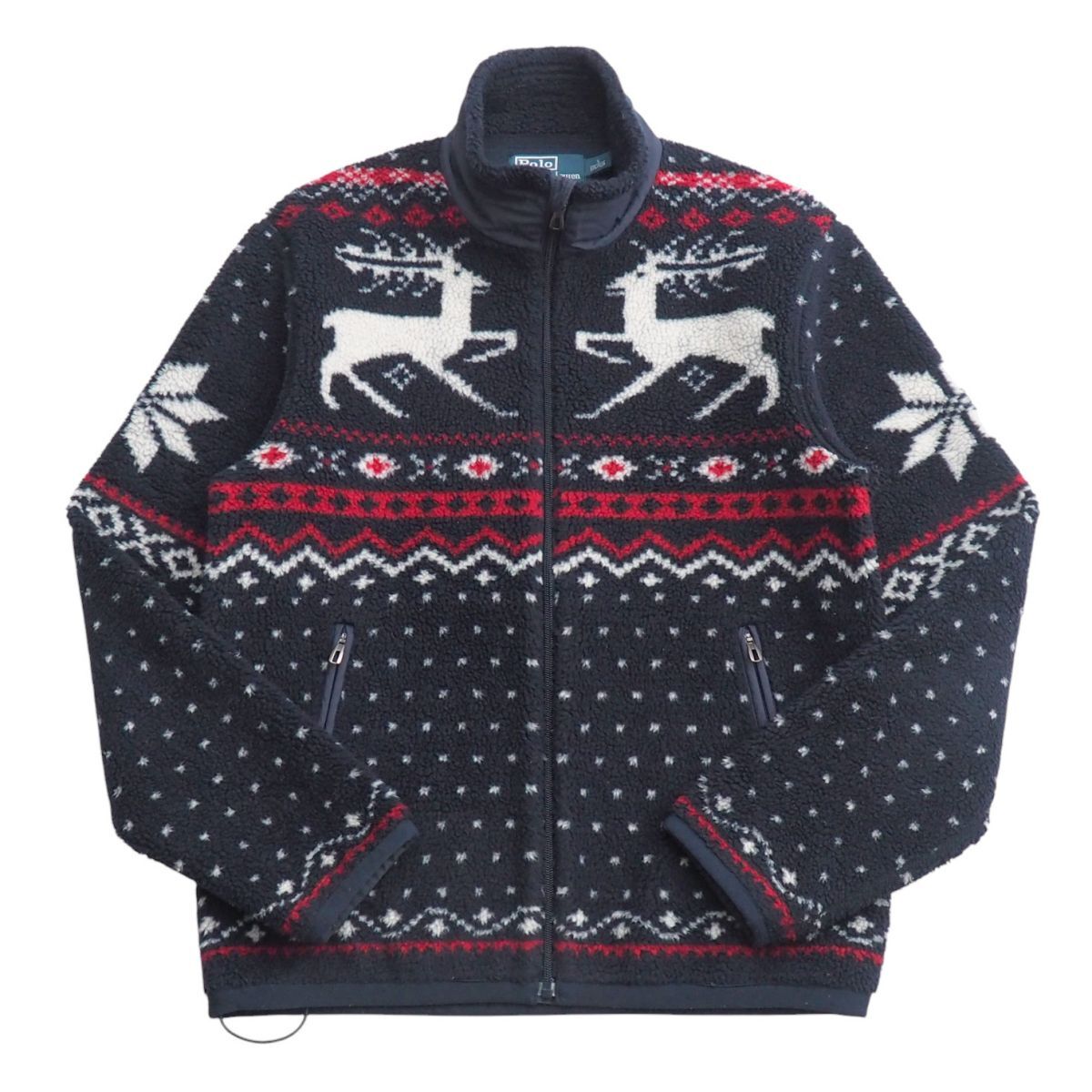 TJ3979◎ポロラルフローレン トナカイ スノーフレーク柄 ボアフリース フロントジップ ジャケット ブルゾン ネイビー系 メンズ サイズS