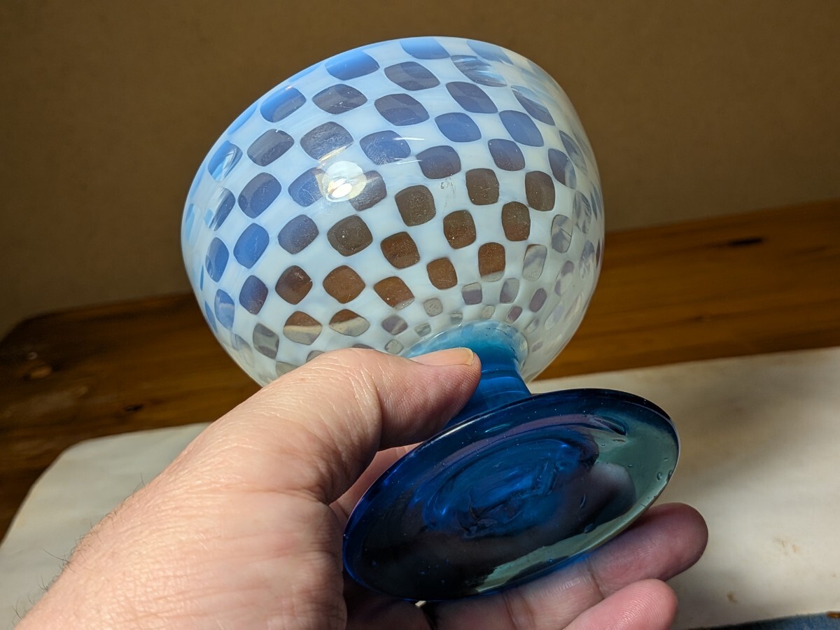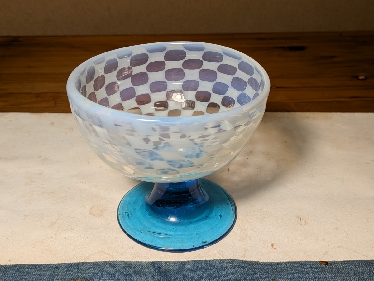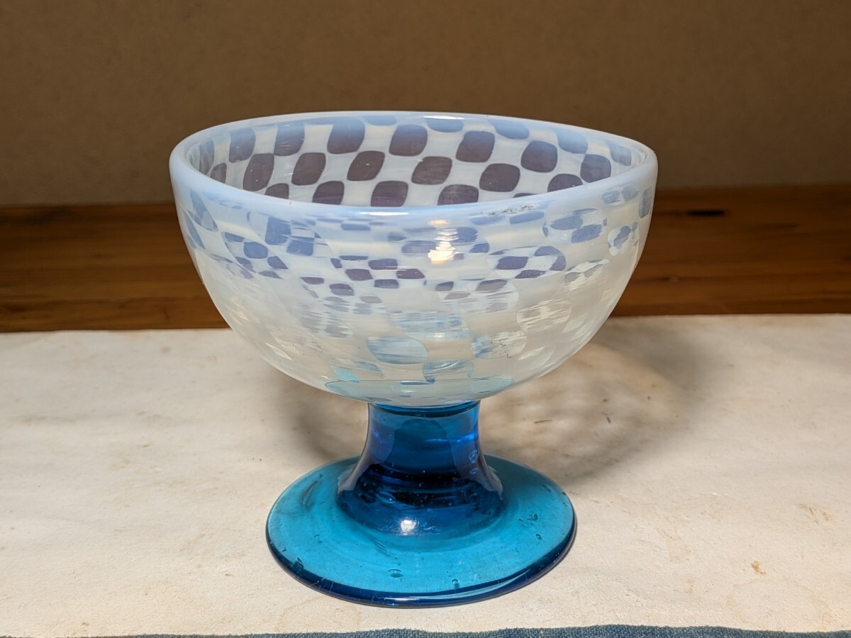 市松文の青足の氷コップです。通常見かける物より水玉文が細かく評価の高い物です。無傷と言って良い状態です。氷コップコレクションの充実にお役立て下さい。・口径9.6〜9.7センチ・高さ8.4〜8.5センチ・大正時代 ※新規の方、評価の悪い方の入札は取り消す場合があります。商品到着後は速やかに取引ナビの受取連絡を入れて下さい。