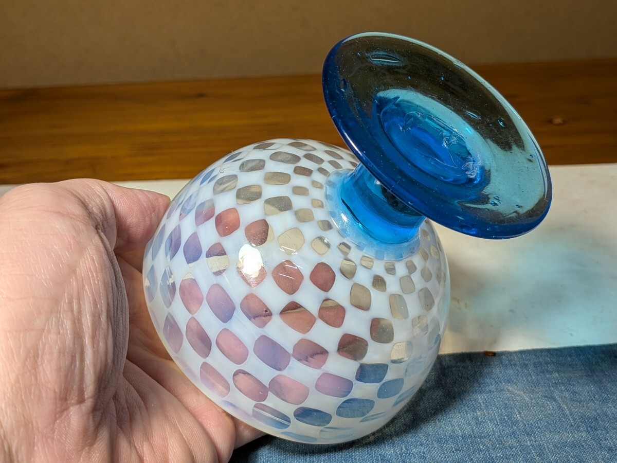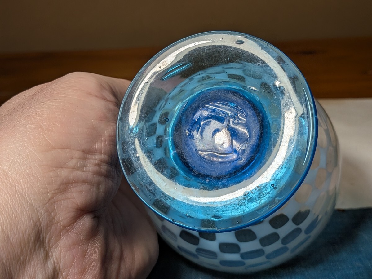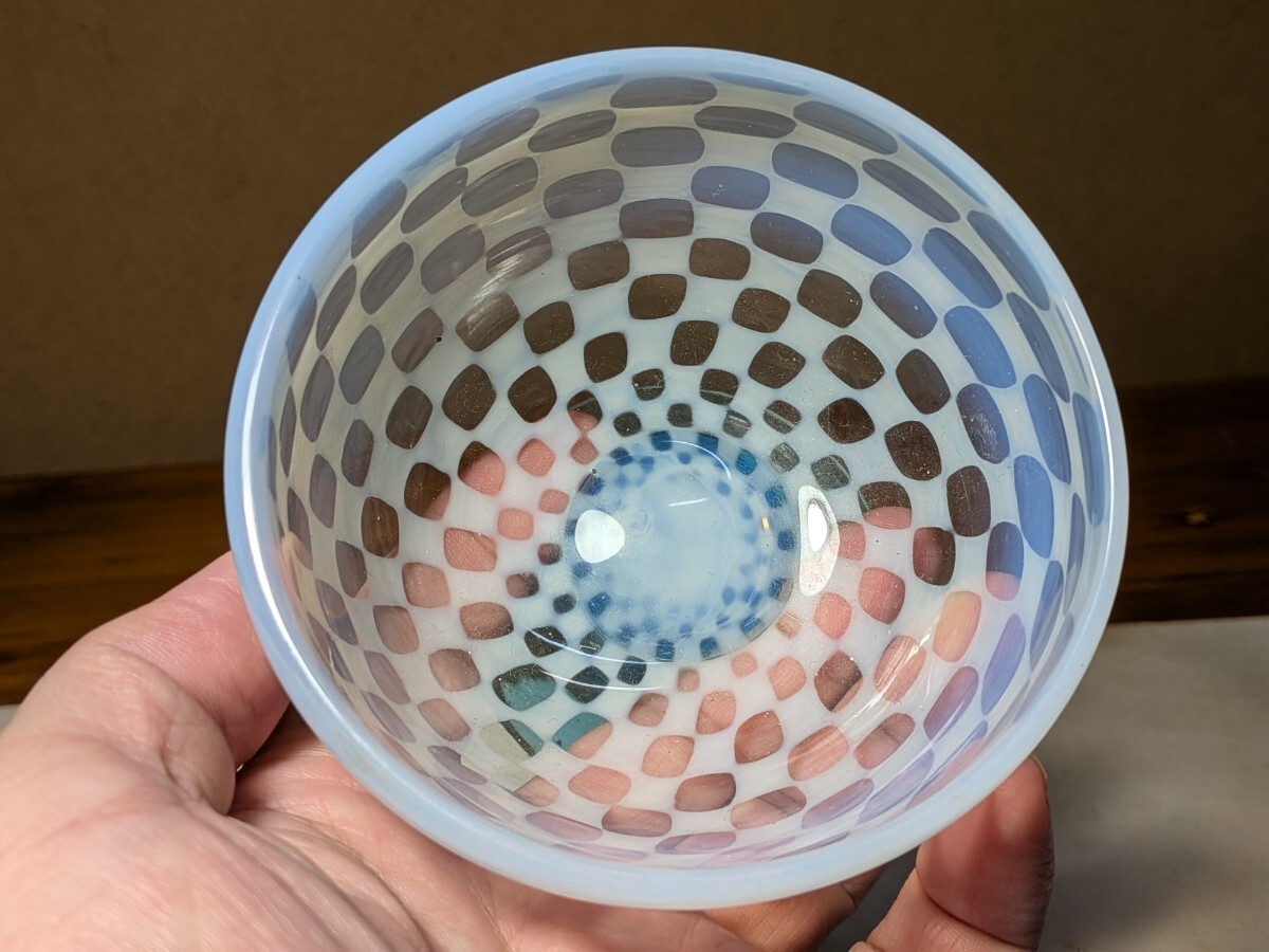 市松文の青足の氷コップです。通常見かける物より水玉文が細かく評価の高い物です。無傷と言って良い状態です。氷コップコレクションの充実にお役立て下さい。・口径9.6〜9.7センチ・高さ8.4〜8.5センチ・大正時代 ※新規の方、評価の悪い方の入札は取り消す場合があります。商品到着後は速やかに取引ナビの受取連絡を入れて下さい。