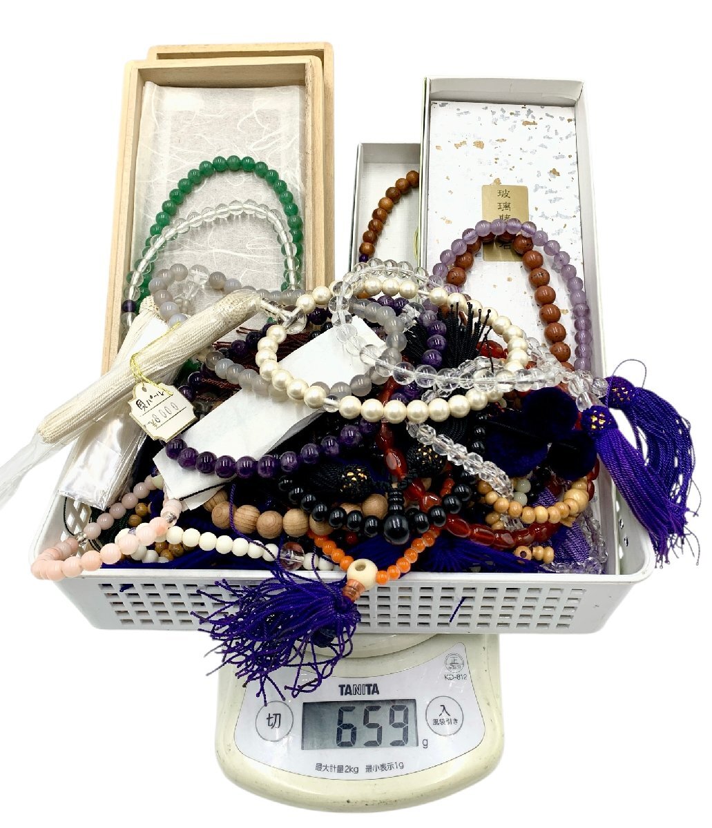 数珠 パール アクセサリー 念珠 ホワイト パール系 クリア 茶色 他 おまとめ 約1.0kg 中古品 80サイズ 蘇さ(MtY2276)