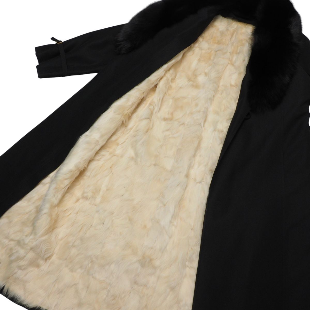 Product name: GS4280▲Kanebo Silk 総シルク フォックスファー襟 ロングコート ラムファーライナー/ベルト付き 本毛皮 リアルファー サイズ13 ブラック系