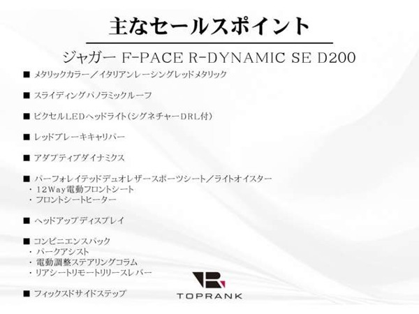 Product name: Fペイス Rダイナミック SE 2.0L D200 ディーゼルターボ 4WD 外装色:イタリアンレーシングレッド コンビ