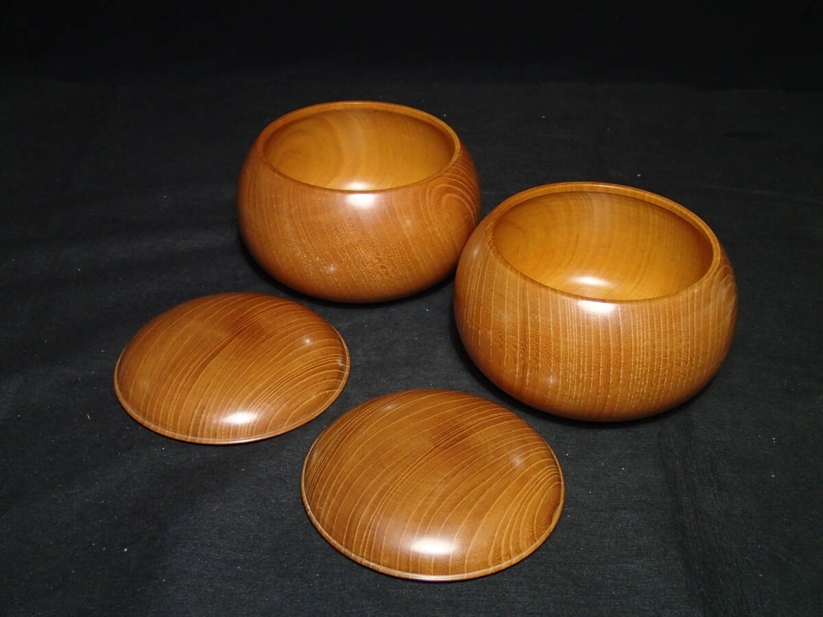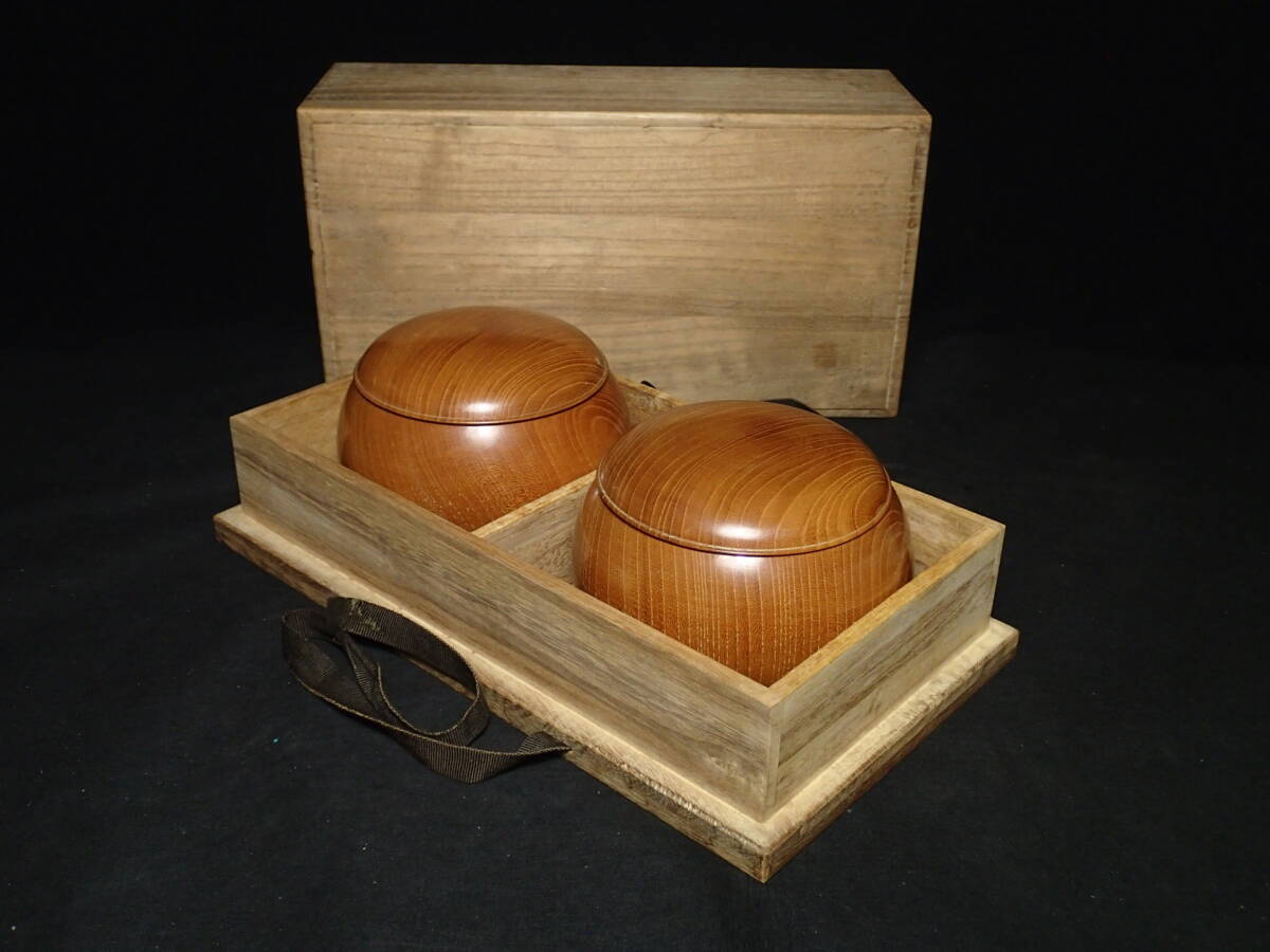 ●碁笥は特大仕様で欅又は桜材に見えますが、材質は