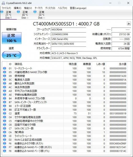 Product name: Crucial CT4000MX500SSD1 4TB 2.5inch SSD 動作確認済