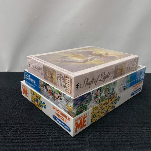 H613-O35-3808【未開封】1000ピース ジグソーパズル 3点セット/ Disney ウエディングベルにのせて/ミニオン/シャフトオブライト/まとめ OA