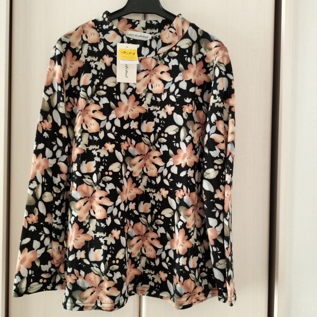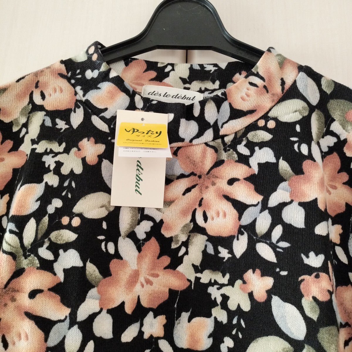 Product name: 新品タグ付【LLサイズ】秋冬 des le debut レディース ミセス 長袖ニット ハイネック カットソー ゆったり 船場ニット 118467 黒系花柄②
