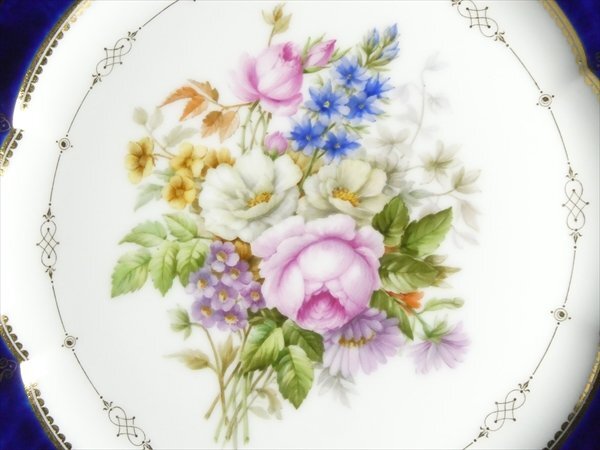 Product name: セーブル 西洋陶磁器 最高峰ブランド SEVRES クラウデッドブルー 金彩 コバルト フラワーブーケ 花絵 フラワーリム プレート 飾皿 n778