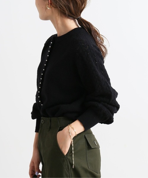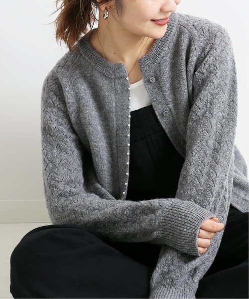 Product name: ∞ slobe iena イエナスローブ パール付き 柄編み カーディガン ブラック 黒 ウールブレンド 羽織り ニット プルオーバー ∞