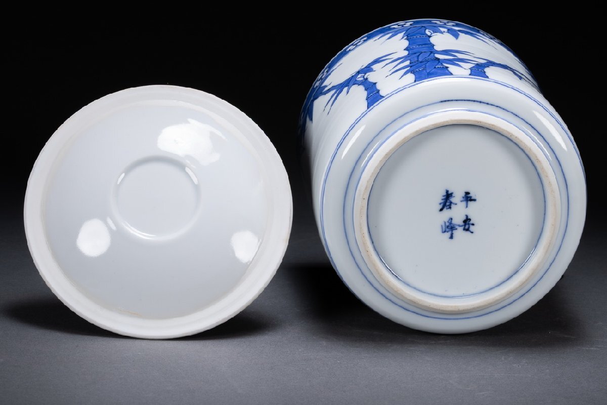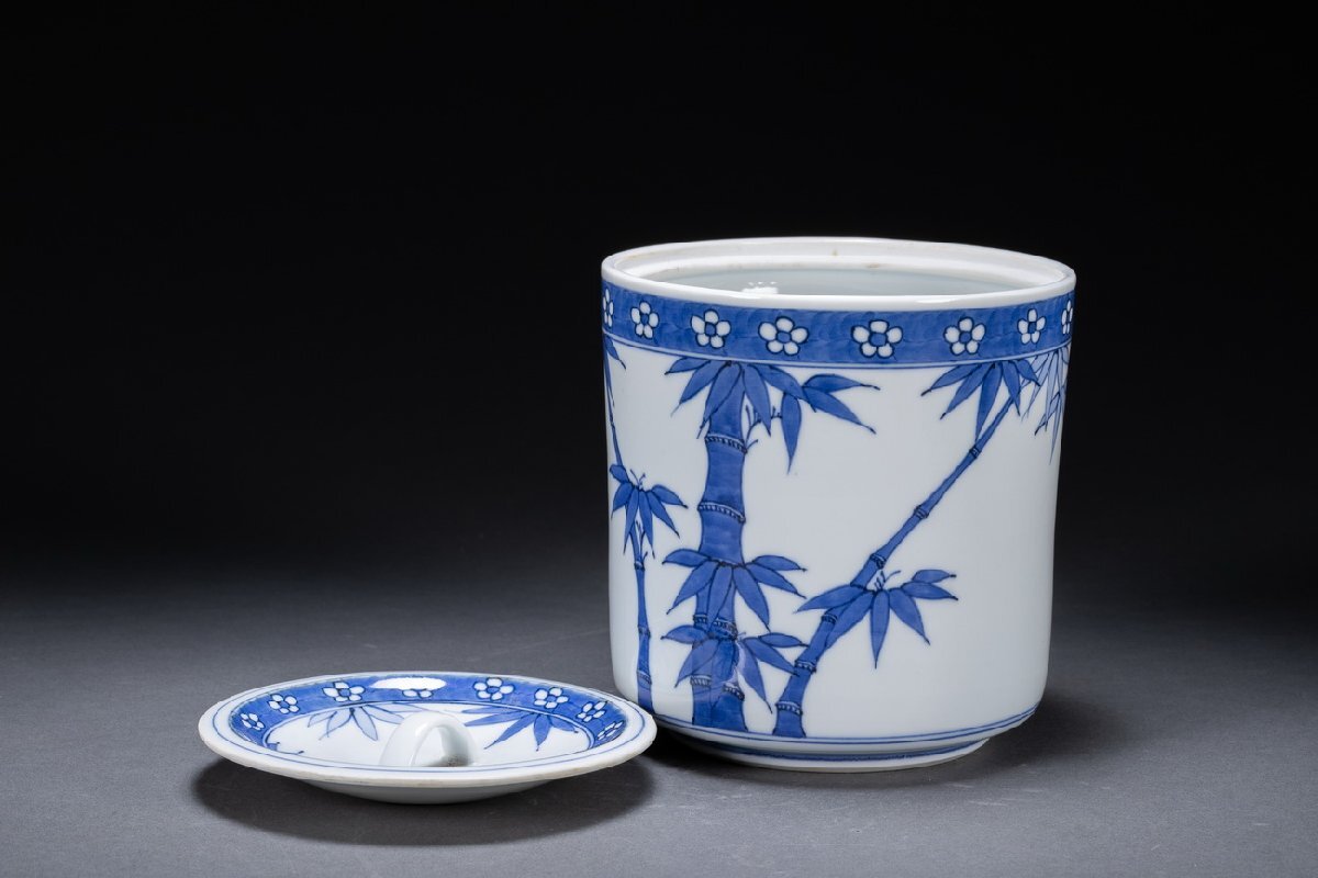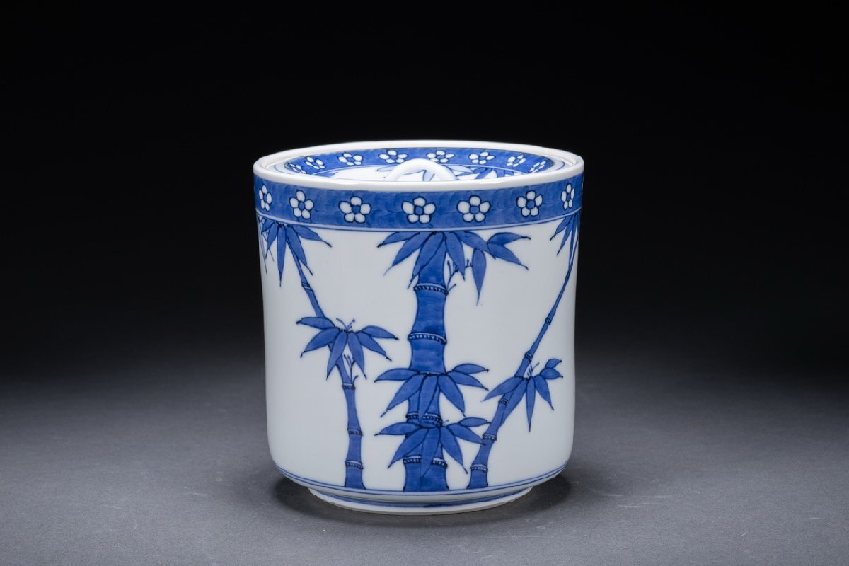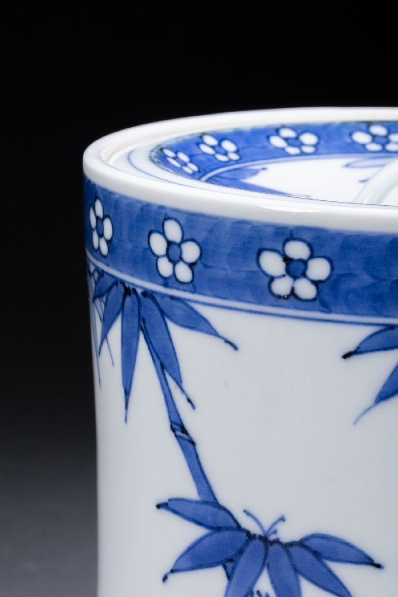 Product name: 【雲錦】京焼 平安春峰 染付き 竹図水指 茶道具 真作保証 美術品7L10-153S1