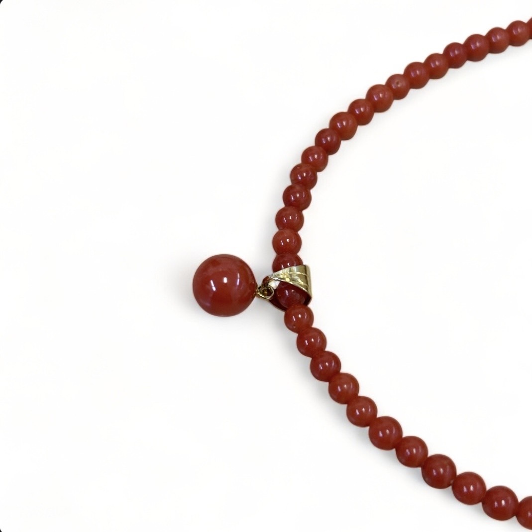 【K18刻印 サンゴ?ネックレス 約6.7mm玉 約7.0g】