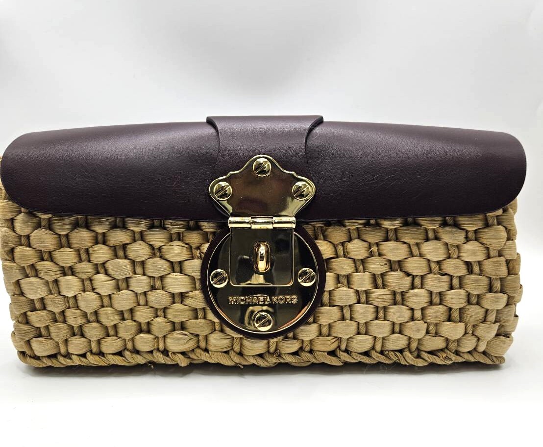12501 ◇ マイケルコース ショルダーバッグ ブラウン系 ストロー レザー MICHAEL KORS 長期保管 中古 説明欄に画像多 肩掛け