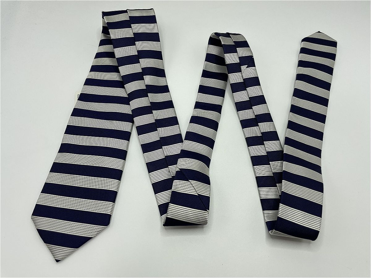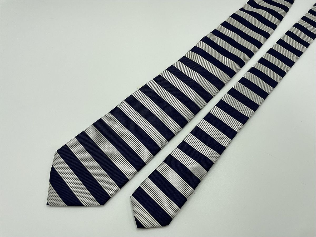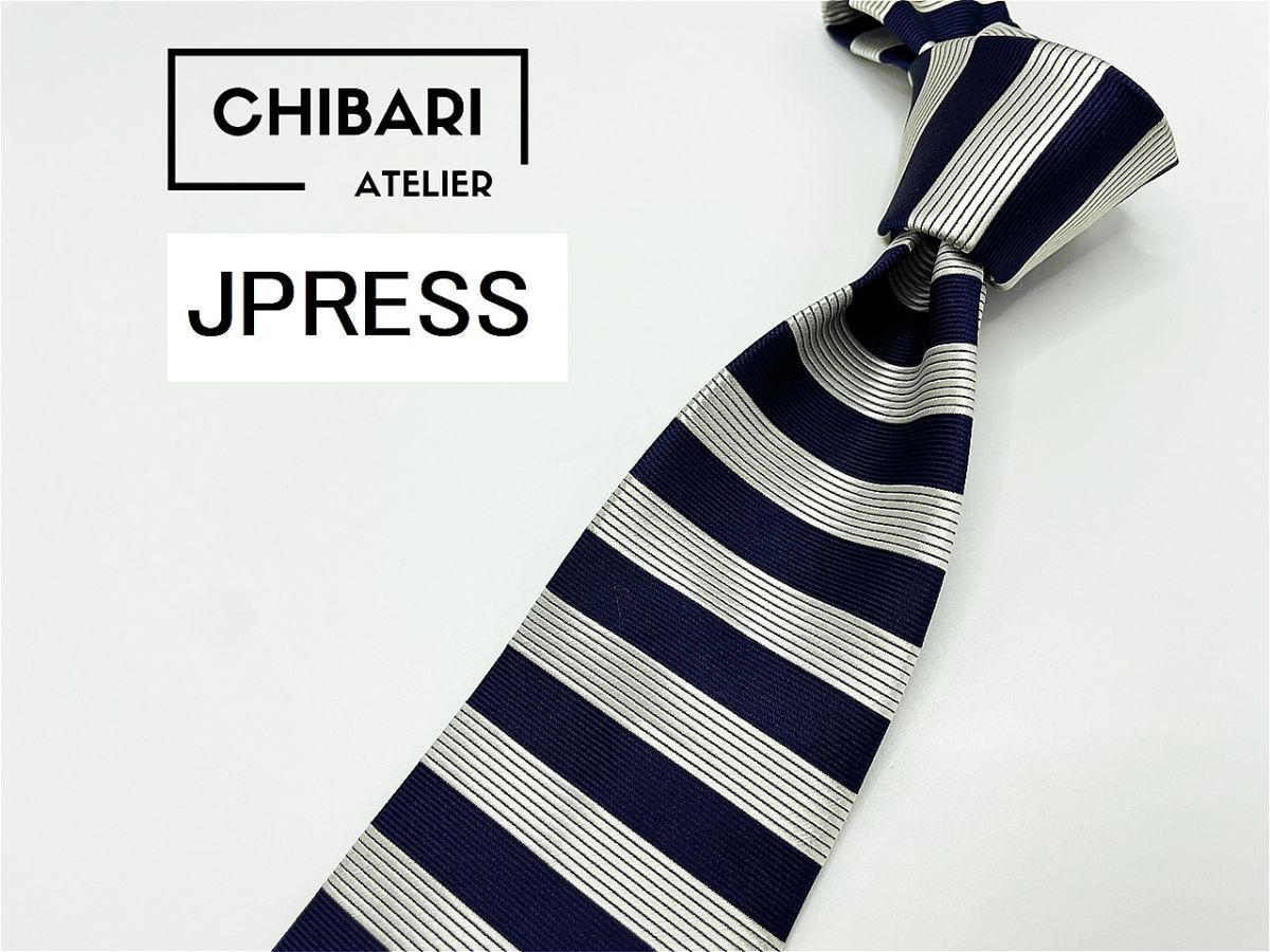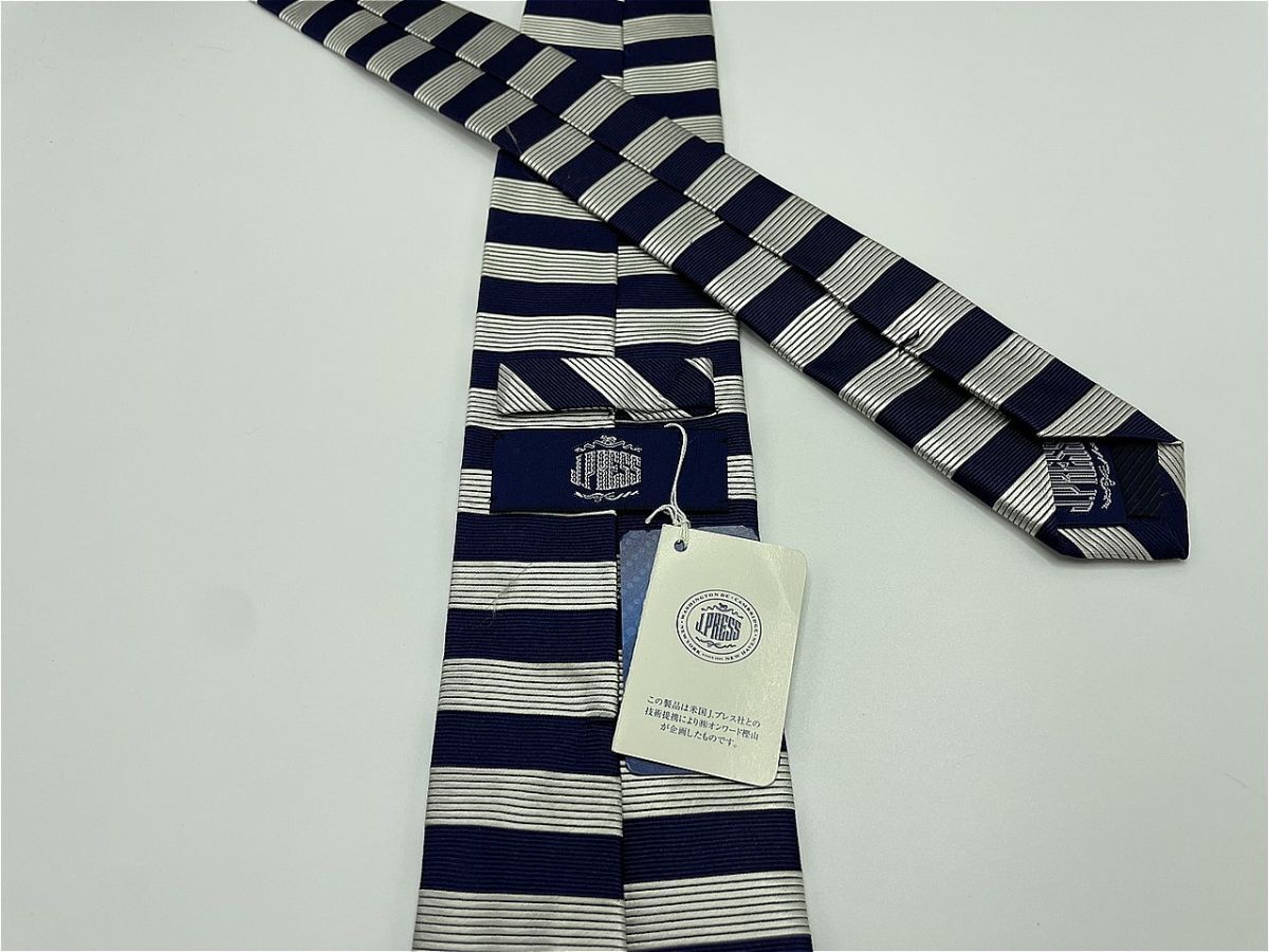 タグ付【超美品】JPRESS ジェイプレス ボーダー柄 ネクタイ 3本以上 送料無料 メンズ シルバーネイビー 1002254