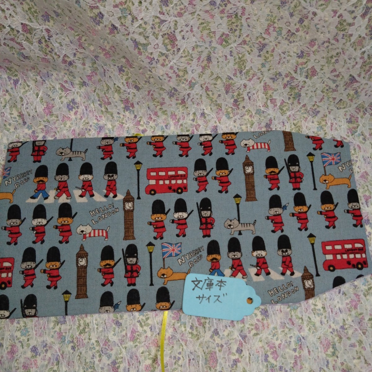 ブックカバー 文庫本size☆ロンドン猫 兵隊 水色  ハンドメイド