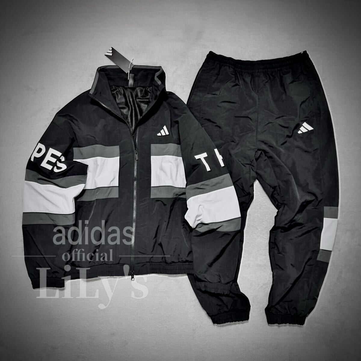 新品未使用 adidas上下セットアップ Mサイズ 25新作 定価18,040円 ルーズフィット アディダス 黒白 ナイロン JM2064 JM2067