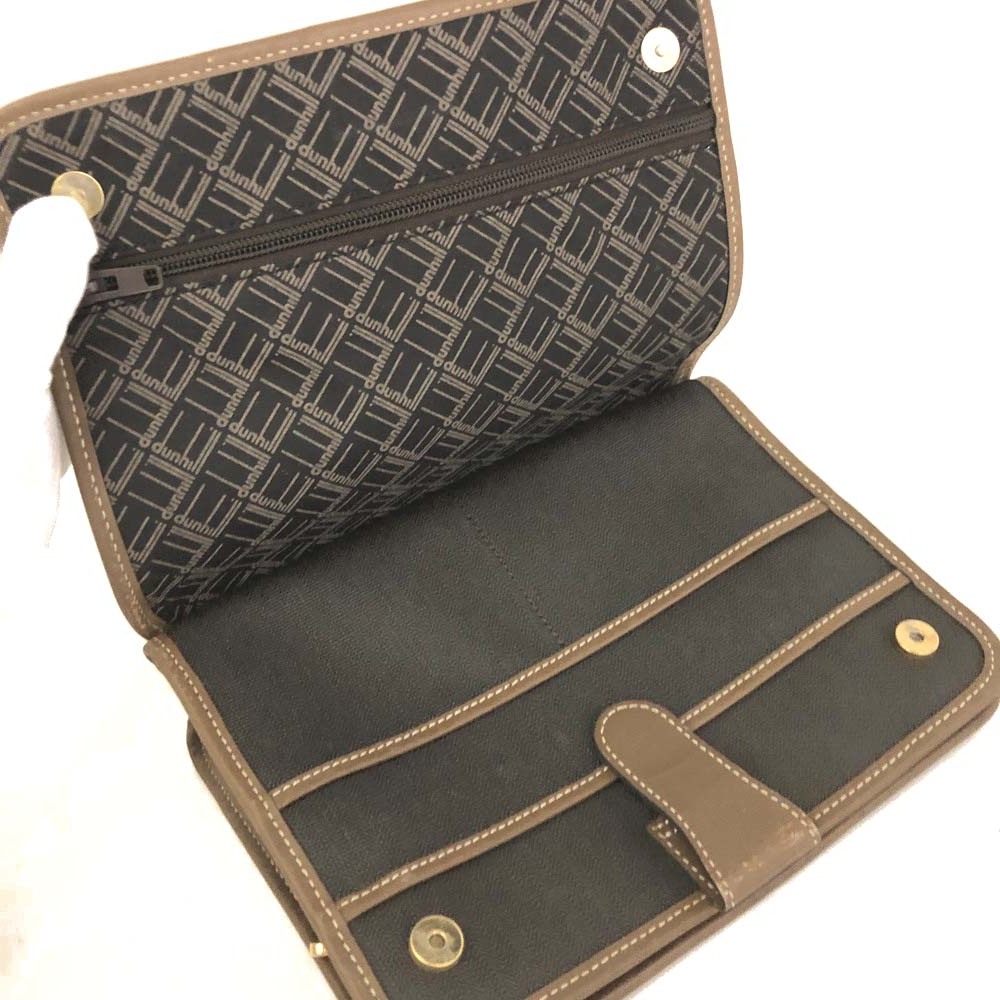 1円 Dunhill ダンヒル コーティングキャンバス レザー クラッチバッグ 鞄 ブラウン /JPB0275