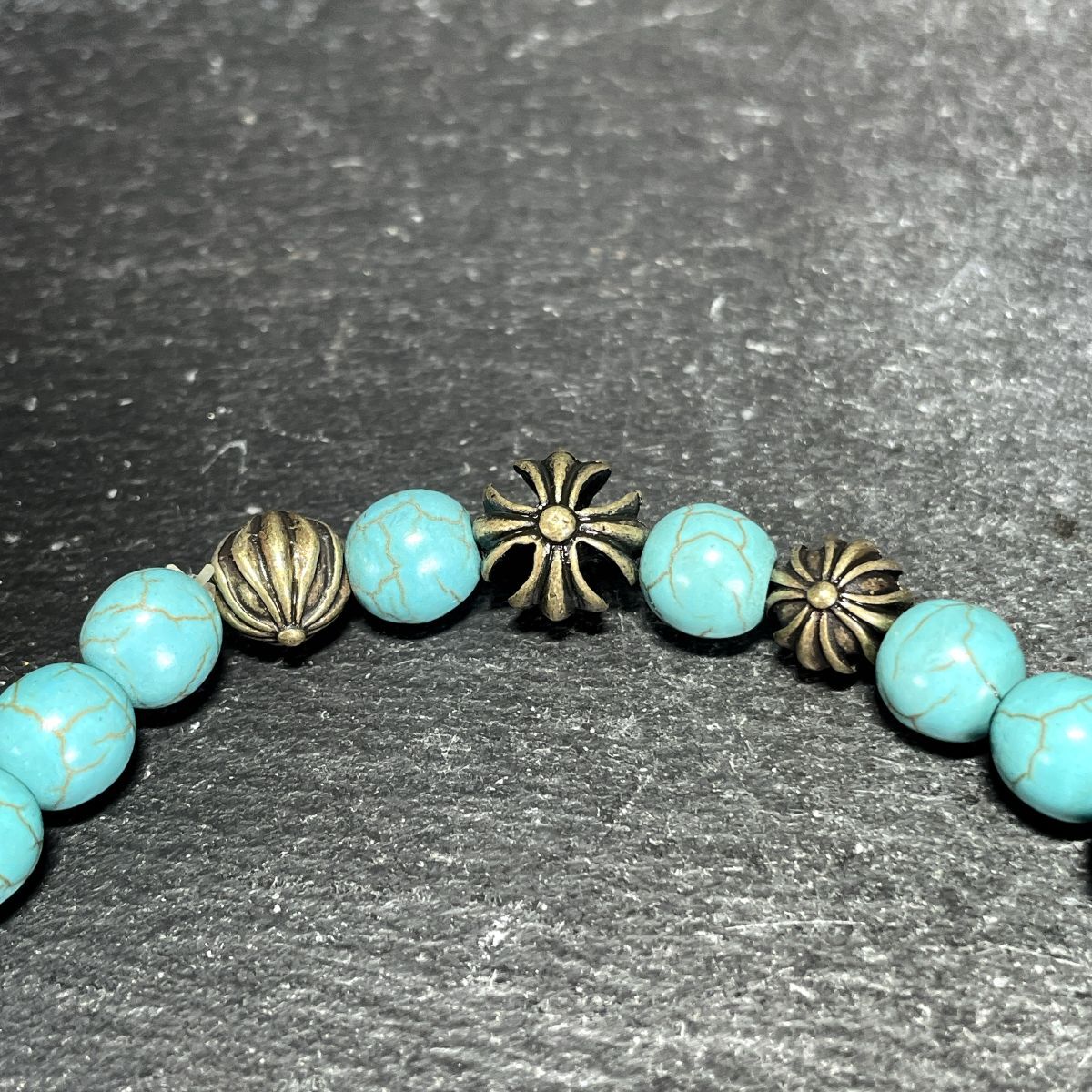 新品 未使用品 ターコイズブレスレット 数珠ブレスレット クロスブレスレット 十字架 クロスボール メンズ ストーン ブレスレット シルバー