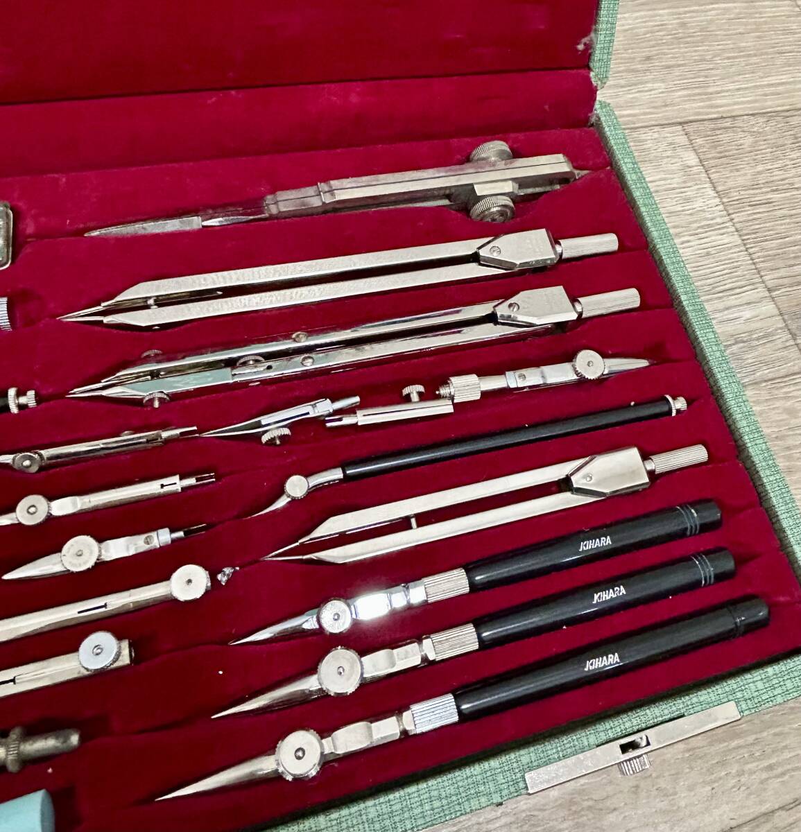 KIHARA/コンパスなど製図道具/丸ごとセット/昭和レトロ/測定/文具/完品か不明/キハラ製作所/ケース/箱付き/現状品