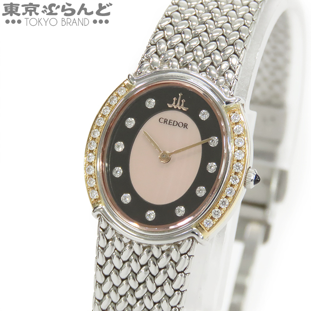 101824706 1円 セイコー クレドール GSWE938 5A70-0AT0 ピンクxブラック SS K18YG 11Pダイヤ ダイヤモンドベゼル 腕時計 レディース QZ