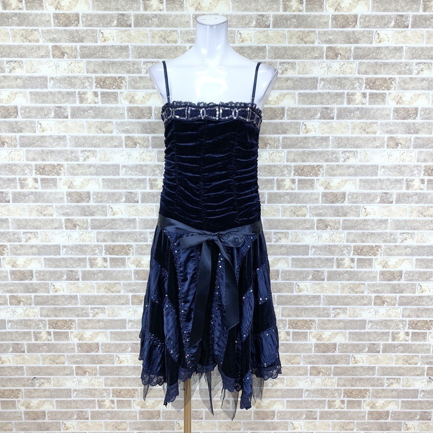 Product name: 1円 ドレス ロングキャミワンピース ベロアネイビー系 パーティードレス カラードレス キャバドレ 発表会  中古16115