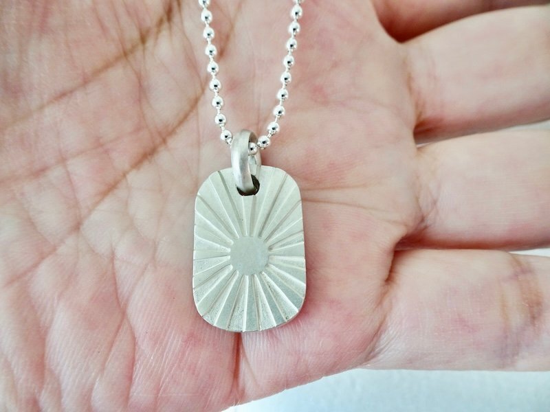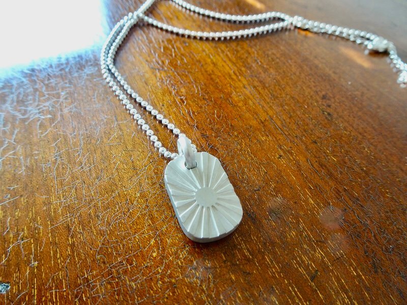 ごらん頂きありがとうございます。 オリジナルブランド 仁尾彫金『プラチナ、太陽のプレート2』を出品致します。宇宙をテーマにしたアクセサリーをオリジナルで自ら制作しています。今回、 バチカンを含めて縦2.5cm、横1.4cmの太陽をモチーフにしたプレートを制作致しました。表面は艶消し処理をしています。全てプラチナの塊でpt900を約18gと大胆に使用し、プレートの厚みも3ミリ強あり肉厚です。全てプラチナの塊なので変色する事はありません。デザイン、制作を私自身で行っている為、今回、新品をご用意致します!!ネックレス45cm(シルバー925ボールチェーン(40から45cmサイズ調節可)も付属致します。
